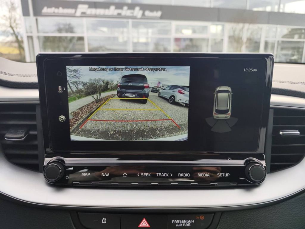 Außenfarbe (HW2) DELUXE WHITE M, Mittelarmlehne hinten mit Getränkehalter, Navi-Paket, 6 Lautsprecher, Abbiegelicht, Adaptive Geschwindigkeits-Regelanlage mit Stop&Go-Funktion, Airbag Fahrer-/Beifahrerseite, Aktives Bremslicht (ESS), Alarmanlage, Anti-Blockier-System (ABS), Antriebs-Schlupfregelung (TCS), Anzeigeinstrumente Supervision mit LCD Display, Audio-Navigationssystem KIA (10,25'), Außenspiegel Wagenfarbe, Außenspiegel elektr. verstellbar, beide, Außenspiegel heizbar, Bordcomputer, Bremsassistent, Brillenfach in Dachhimmel / Dachkonsole integriert, Chromeinfassung Seitenfenster, Dachantenne im Haifischflossen-Design, Dachhimmel grau, Dachkonsole mit Leseleuchten, Dachreling, Dachspoiler, Einparkhilfe hinten, Einschaltautomatik für Fahrlicht, Elektr. Bremskraftverteilung (EBD), Elektron. Stabilitäts-Programm (ESP / ESC), Fahrassistenz-System: Berganfahr-Assistent, Fahrassistenz-System: Fahrprofilauswahl (Drive Mode), Fahrassistenz-System: Fernlichtassistent, Fahrassistenz-System: Frontkollisionswarnung mit Fußgänger- und Fahrraderkennung und Abbiegefunktion, Fahrassistenz-System: Insassenalarm (Rear Occopant Alert, ROA), Fahrassistenz-System: Intelligenter Geschwindigkeits-Assistent (Intelligent Speed Limit Assist, ISLA), Fahrassistenz-System: Müdigkeitserkennungs-Sensor (Driver Attention Warning, DAW), Fahrassistenz-System: Spurfolgeassistent (Lane Following Assist, LFA), Fahrassistenz-System: Verkehrszeichenerkennung, Fahrassistenz-System: aktiver Spurhalteassistent (LKAS, Lane Keep Assist System), Fensterheber elektr. mit Einklemmschutz vorn, Fensterheber elektrisch vorn + hinten, Freisprecheinrichtung Bluetooth, Fußmatten, Gepäcknetz / Tasche an Vordersitzlehne, Geschwindigkeits-Regelanlage (Tempomat), Getriebe 7-Gang - Doppelkupplungsgetriebe DCT, Getränkehalter, Heckleuchten LED, Heckscheibe heizbar, Heckscheibenwischer, Heckspoiler mit integrierter Bremsleuchte, Isofix-Aufnahmen für Kindersitz, Karosserie: 5-türig, Klimaanlage, Kopf-Airbag-System, Kopfstützen hinten verstellbar, Kopfstützen vorn verstellbar, Kühlergrill Klavierlack, LM-Felgen 6,5x16, Laderaumboden variabel, Lenkrad (Leder), Lenkrad heizbar, Luftausströmer im Fond mitte, Metallic-Lackierung, Mittelarmlehne hinten, Mittelarmlehne vorn, Modellpflege, Motor 1,5 Ltr. - 103 KW T-GDI KAT, Multifunktion für Lenkrad, Nebelscheinwerfer, Parkbremse elektrisch, Radioempfang digital (DAB+), Reifen-Reparaturset, Reifendruck-Kontrollsystem, Rückfahrkamera, Rücksitzbank geteilt/klappbar (60:40), Schadstoffarm nach Abgasnorm Euro 6d-TEMP, Schadstoffarm nach Abgasnorm Euro 6e, Schalt-/Wählhebelgriff Leder, Scheinwerfer Halogen, Seitenairbag, Servolenkung elektronisch gesteuert, Sitz vorn links höhenverstellbar, Sitzbezug / Polsterung: Stoff, Sitzheizung vorn, Smartphone Schnittstelle (Apple CarPlay & Android Auto), Sonnenblenden mit Spiegel (beleuchtet), Start/Stop-Anlage (ISG), Steckdose (12V-Anschluß) in Mittelkonsole, Stoßfänger Wagenfarbe, Tagfahrlicht LED, Tagfahrlicht LED hinten, Touchscreen-Farbdisplay (7,0 Zoll), Türgriffe außen Wagenfarbe, Türgriffe innen Chrom-Optik, USB-Anschluss + AUX-IN-Anschluss, USB-Schnellladeanschluß Mittelkonsole, Warnanlage für Sicherheitsgurte hinten, Warnanlage für Sicherheitsgurte, Fahrer-/Beifahrerseite, Wegfahrsperre, Wärmeschutzverglasung, Zentralverriegelung mit Fernbedienung
