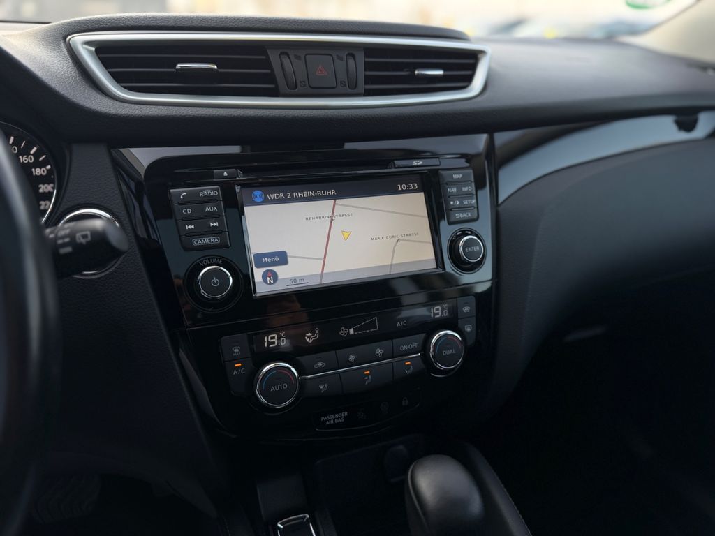 3. Bremsleuchte, Airbag Beifahrerseite abschaltbar, Airbag Fahrer-/Beifahrerseite und Seitenairbag vorn, Ambiente-Beleuchtung, Audio Navigationssystem Nissan Connect mit Touchscreen-Farbdisplay, Audiobedienung am Lenkrad, Audiosystem: Radio mit CD- und MP3-Player, Automatische Fahrlichtschaltung, AUX-IN-Anschluss (AUX-IN), Außenspiegel elektr. anklappbar, Außenspiegel elektr. verstell- und heizbar, Außenspiegel Wagenfarbe, Außentemperaturanzeige, Blinkleuchte in Außenspiegel integriert, Bordcomputer, Bremsassistent (Nissan Brake-Assist), Coming-Home-Lichtfunktion (Friendly Lightning), Design-Paket II, Elektr. Bremskraftverteilung (EBD), Fahrassistenz-Paket Visia, Fahrassistenz-System: Aktive Fahrkomfortregelung (Fahrwerksdämpfung), Fahrassistenz-System: Aktive Motorbremse, Fahrassistenz-System: Berganfahr-Assistent, Fahrassistenz-System: Fernlichtassistent, Fahrassistenz-System: Kurvenbremskontrolle (Aktive Spurkontrolle), Fahrer-Informations-System (FIS) mit Farbdisplay, Fensterheber elektrisch vorn + hinten, Fernentriegelung Tankklappe, Freisprechanlage Bluetooth, Frontscheibe Verbundglas, Gepäckraumabdeckung / Rollo, Getränkehalter in Mittelkonsole, Gurtstraffer, Handschuhfach beleuchtet, Heckscheibe heizbar, Innenraumfilter: Pollenfilter, Isofix-Aufnahmen für Kindersitz, Kamerasystem Around View, Karosserie: 5-türig, Klimaautomatik 2-Zonen, Kopf-Airbag-System, Kopfstützen vorn und hinten verstellbar, Lendenwirbelstütze Sitz vorn links, Lenksäule (Lenkrad) höhen-/längsverstellbar, Leseleuchte vorn, Mittelarmlehne hinten, Motor 1,2 Ltr. - 85 kW 16V KAT, Nebelschlussleuchte, Parkbremse elektrisch, Radstand 2646 mm, Reifen-Reparaturset, Reifendruck-Kontrollsystem, Rücksitz geteilt/klappbar, Schadstoffarm nach Abgasnorm Euro 6, Schalt-/Wählhebelgriff Leder, Schaltpunktanzeige, Scheibenwischer mit Intervallschaltung, Sitz vorn links höhenverstellbar, Sitz vorn rechts höhenverstellbar, Sitzbezug / Polsterung: Stoff, Sitzheizung vorn, Sonnenblenden mit Spiegel, Start-Stop-Knopf, Start/Stop-Anlage, Steckdose (12V-Anschluß) in Mittelkonsole, Türgriffe innen verchromt, Wärmeschutzverglasung mit UV-Schutz, Ambiente-Beleuchtung, Regensensor, Sitzheizung vorn