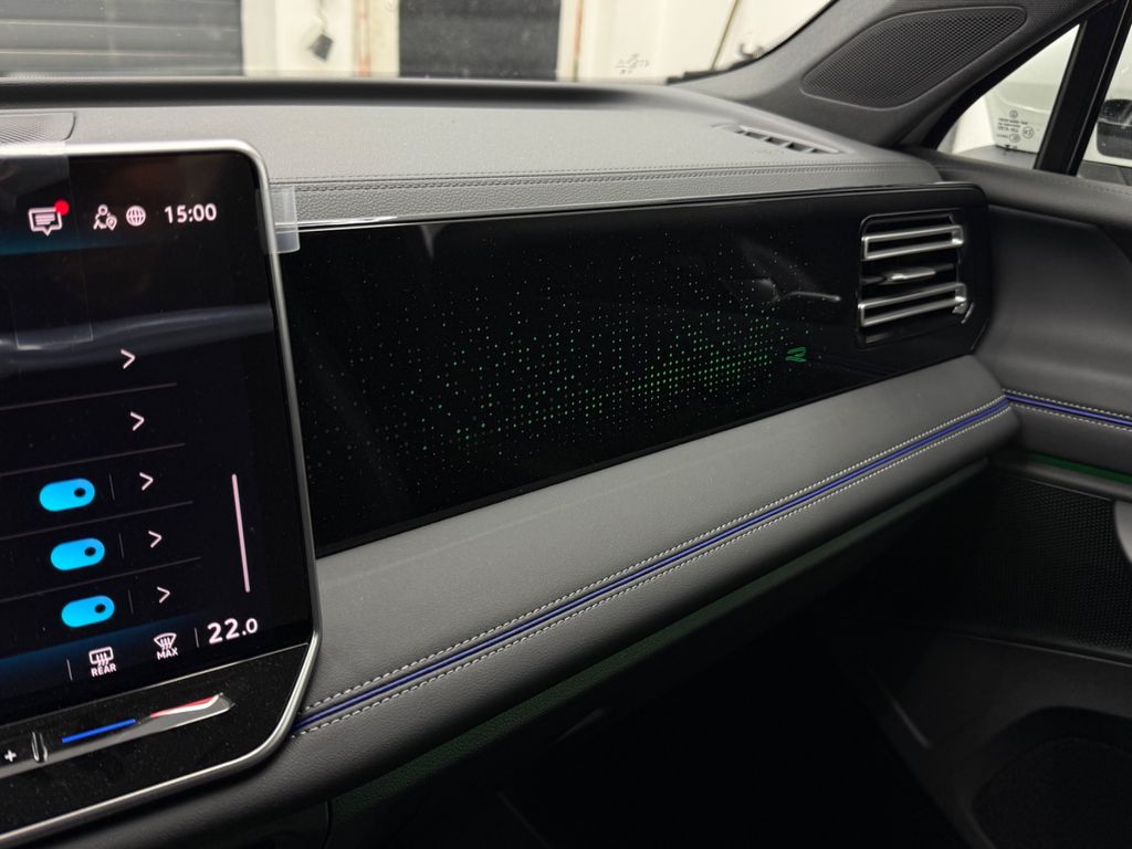 3-Punkt-Sicherheitsgurt hinten mitte, Abbiege- und Allwetterlicht / Schlechtwetter-Licht, Airbag Fahrer-/Beifahrerseite, Beifahrerairbag abschaltbar, Ambiente-Beleuchtung (30 Farben, Armaturenbrett und Türverkleidung, Dekoreinlagen durchleuchtet), App-Connect Wireless (Apple CarPlay, Android Auto), Ausstattung R-Line, Automatische Fahrlichtschaltung mit Leaving Home / Coming-Home-Lichtfunktion, Tagfahrlicht LED, Außenspiegel asphärisch, links und konvex, rechts, Außenspiegel elektr. verstell-, heiz- und anklappbar, mit Memory, Außenspiegel mit Umfeldleuchte und Projektionsfunktion, Außenspiegel und Türgriffe außen in Wagenfarbe, Bordwerkzeug, Chromeinfassung Fensterheberschalter / Spiegelverstellung, Chromleisten an Seitenfenstern, Dachhimmel Stoff, schwarz, Dachreling silber eloxiert, Digital Cockpit PRO (Instrumentenanzeige digital), Einstiegsleisten vorn (Aluminium), Elektron. Stabilitäts-Programm (ESP) mit Bremskraftverstärker elektro-mechanisch, Fahrassistenz-System: Abbiegebremsfunktion und Ausweichunterstützung, Fahrassistenz-System: Ablenkungs- und Müdigkeitserkennung, Fahrassistenz-System: Autom. Distanzregelung (ACC inkl. Stop&Go-Funktion), Fahrassistenz-System: Berganfahr-Assistent, Fahrassistenz-System: Fahrprofilauswahl, Fahrassistenz-System: Fernlichtregulierung (Light Assist), Fahrassistenz-System: Kreuzungs-Assistent, Fahrassistenz-System: Notbremsassistent Front assist mit Fußgänger- und Fahrraderkennung, Fahrassistenz-System: Parklenkassistent (Park Assist Plus) inkl. Einparkhilfe vorn und hinten, Fahrassistenz-System: Spurhalteassistent (Lane Assist), Fahrassistenz-System: Spurwechselassistent (Side Assist) mit Auspark-Assistent und Ausstiegswarnung, Fahrassistenz-System: Verkehrszeichenerkennung, Fahrerlebnisschalter inkl. Innenraumerlebnis Atmospheres, Frontscheibe Verbundglas, wärmedämmend, Fußgänger-Schutzmaßnahmen erweitert, Fußmatten Textil, Fzg. ohne Reifen-Reparaturkit, Gepäckraumboden höhenverstellbar, Geschwindigkeitsbegrenzer mit vorausschauender Geschw.-Regelung, Heckleuchten LED in 3D-Optik, Infotainment-System mit Touchscreen-Farbdisplay 12,9 Zoll, Innenausstattung: Dekor-Set R-Line, durchleuchtet, Innenspiegel mit Abblendautomatik, Isofix-Aufnahmen für Kindersitz an Beifahrersitz und Rücksitze außen (inkl. i-Size-Kindersitze), Karosserie: 5-türig, Keyless-Start mit Safesicherung, Keyless-Start ohne Safesicherung, Klimaanlage Air Care Climatronic 3-Zonen inkl. Fondbedienung und Aktiv-Kombi-Filter, Kopfstützen hinten (3-fach), Lautsprecher (8), LED Lichtleiste zwischen Scheinwerfer und Türgriffschalen außen beleuchtet, Lendenwirbelstützen vorn, pneumatisch verstellbar, Leuchtweitenregelung automatisch und Dynamisches Kurvenlicht, LM-Felgen, Mild-Hybrid 110 kW (Motor 1,5 Ltr. - 110 kW eTSI), Mild-Hybrid-Technologie, Mittelkonsole gepolstert, Nebelschlussleuchte einseitig und Rückfahrleuchten beidseitig, Nichtraucher-Paket, Notrufsystem, Otto-Partikelfilter (OPF), Parkbremse elektrisch mit Auto-Hold-Funktion, Pedale Edelstahl, Radioempfang digital (DAB+), Radstand Standard, Reifenkontroll-Anzeige, Rückfahrkamera (Rear View), Rücksitz geteilt / klappbar, verschiebbar, Mittelarmlehne und Durchladefunktion, Rücksitz geteilt / klappbar, verschiebbar, Neigungsverstellung, Durchladefunktion und Mittelarmlehne, Schadstoffarm nach Abgasnorm Euro 6e, Scheinwerfer LED Plus, Seitenairbag und Kopfairbag vorn und hinten, Center-Airbag vorn, Service-System: Intelligente Fahrzeugvernetzung (Car2X), Servolenkung elektro-mechanisch und geschwindigkeitsabhängig, Sicherheitsgurte hinten außen mit Gurtstraffer, Sitzbezug / Polsterung: Stoff R-Line, Sitze vorn höhenverstellbar, ErgoActive Sitz links, Sitze vorn mit Massagefunktion, Sitze: Sport-Komfortsitze vorn, Sonnenblenden mit Spiegel (beleuchtet), Start/Stop-Anlage mit Rekuperation, Stoßfänger R-Line mit Zierleiste Chrom, Warnanlage für Sicherheitsgurte vorn und hinten