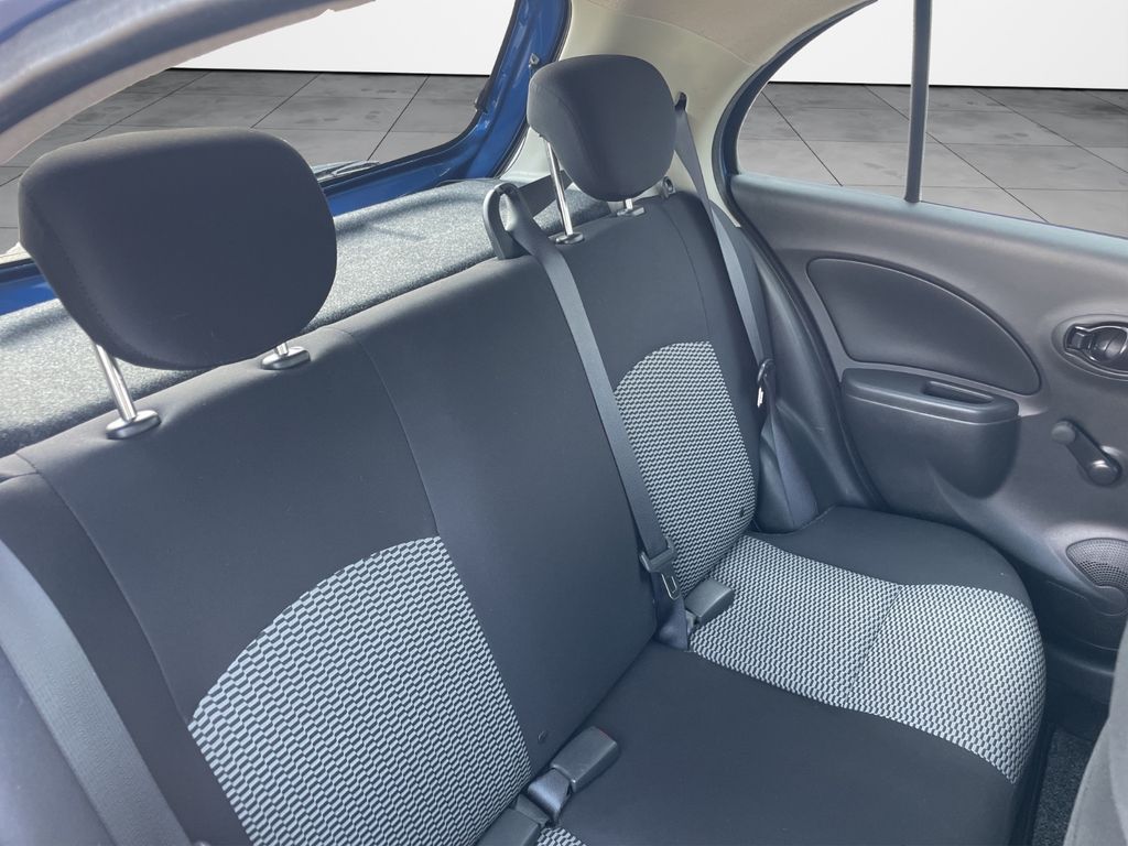 Airbag Beifahrerseite abschaltbar, Airbag Fahrer-/Beifahrerseite und Seitenairbag vorn, Audio-/Bordcomputerbedienung am Lenkrad, Audiosystem: Radio mit CD-Player, Außenspiegel mech. von innen verstellbar, Bluetooth-Schnittstelle, Bremsassistent (Nissan Brake-Assist), Fernentriegelung Tankklappe, Freisprechanlage Bluetooth, Frontscheibe Verbundglas, Gepäckraumabdeckung / Rollo, Heckscheibe heizbar, Isofix-Aufnahmen für Kindersitz, Karosserie: 5-türig, Kopf-Airbag-System, Kopfstützen hinten verstellbar (links/rechts), Lenksäule (Lenkrad) höhenverstellbar, Modellpflege, Motor 1,2 Ltr. - 59 kW KAT, Reifendruck-Kontrollsystem, Reserverad als Notrad, Schadstoffarm nach Abgasnorm Euro 6, Schaltpunktanzeige, Sitzbezug / Polsterung: Stoff, Steckdose (12V-Anschluß) in Mittelkonsole, Stoßfänger Wagenfarbe, Türverkleidung mit Stoffeinsatz, Verglasung getönt