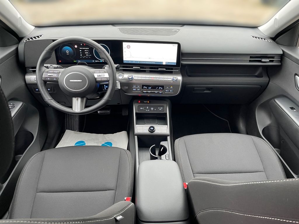 6 Lautsprecher, Airbag Beifahrerseite, Airbag Beifahrerseite abschaltbar, Airbag Fahrerseite, Ambiente-Beleuchtung, Applikationen am Fahrzeugheck (Silber), Audio-Navigationssystem, Audiosystem: Radio RDS, Außenspiegel elektr. anklappbar, Außenspiegel elektr. verstell- und heizbar, beide, Außenspiegel lackiert, Batterieheizsystem, Blinkleuchten LED in Außenspiegel integriert, Dachreling, Dachspoiler Wagenfarbe, Zierleisten verchromt, Digital Cockpit (Instrumentenanzeige Digital), Effizienz-Paket, Einschaltautomatik für Fahrlicht / Lichtsensor, Elektromotor 160 kW (cont. 53 kW), Fahrassistenz-System: aktiver Spurhalteassistent (LKAS, Lane Keep Assist System), Fahrassistenz-System: Aufmerksamkeits-Assistent (In Cabin Camera, ICC), Fahrassistenz-System: Autobahnassistent 1.5 (Highway Driving Assist, HDA 1.5), Fahrassistenz-System: Autonome Notbremsfunktion inkl. Frontkollisionswarnung (FCA), Fahrassistenz-System: Berganfahrhilfe, Fahrassistenz-System: Einparkhilfe vorn und hinten, Fahrassistenz-System: Fahrprofilauswahl (Drive Mode), Fahrassistenz-System: Fernlichtassistent, Fahrassistenz-System: Insassenalarm (RSA), Fahrassistenz-System: Multikollisionsbremse (Multi Collision Brake), Fahrassistenz-System: Sicherheitssystem mit automatischem Notruf (ERA GLONASS / eCall), Fahrassistenz-System: Spurfolgeassistent (Lane Following Assist, LFA), Fahrassistenz-System: Verkehrszeichenerkennung, erweitert (Geschwindigkeits-Regel-/Begrenzeranlage), Fensterheber elektrisch hinten, Fensterheber elektrisch vorn und hinten, mit Auf-/Ab-Automatik, Fensterzierleisten verchromt, Freisprecheinrichtung Bluetooth, Frontscheibe wärmedämmend, Frontstaufach / Frunk (Kofferraum, vorn), Gepäck-/Laderaumleuchte LED, Gepäckraumabdeckung / Rollo, Geschwindigkeits-Regelanlage (Tempomat) mit Abstandsregelung ACC, Getriebe für Elektrofahrzeug, Gurtstraffer, Heckleuchten LED, Heckscheibe heizbar, HV-Batterie 65,4 kWh (Lithium-Ionen), Induktionsladeschale für Smartphone, Innenspiegel mit Abblendautomatik, Isofix-Aufnahmen für Kindersitz, Karosserie: 5-türig, Klimaautomatik 2-Zonen, Kopf-Airbag-System, Kopfstützen hinten verstellbar, Kühlergrill, Aktive Luftklappen, regelbar, Ladeklappe beheizbar, Ladevorrichtung On-Board-Lader (3-Phasen), LED-Leuchtband am Heck, LED-Leuchtband vorn, Lendenwirbelstütze Sitz vorn links, elektr. verstellbar, Lenkrad (Leder) 3-Speichen, Lenkrad mit Schaltwippen, Lenksäule (Lenkrad) höhenverstellbar, Lenksäule (Lenkrad) längsverstellbar, Leseleuchten vorn und hinten LED, Leuchtweitenregelung, Lifetime MapCare (Internetbasierende Dienste), LM-Felgen, Luftdüsen hinten, Mittelarmlehne hinten, Navigationsbasierte Adaptive Geschwindigkeitsregelanlage (Tempomat) mit Abstandsregelung (NSCC), Nebelschlussleuchte, Notladekabel (ICCB), Parkbremse elektrisch (EPB), Projektor-Scheinwerfer LED, Radioempfang digital (DAB+), Radlaufabdeckung vorn und hinten lackiert, Radstand Standard, Reifen-Reparaturkit, Reifendruck-Kontrollsystem, Rückfahrkamera, Rücksitzlehne geteilt/klappbar, Schalt-/Wählhebel (Shift by Wire), Scheibenbeschlagerkennung / Regelung, Seitenairbag vorn, Seitenairbag vorn mitte (Central Airbag), Service-System: Online Update OTA (Over The Air), Service-System: Plug & Charge, Service-System: Remote Services (Blue Link), Sicherheitsgurte vorn höhenverstellbar, Sitz vorn links höhenverstellbar, Sitz vorn rechts höhenverstellbar, Sitzbezug / Polsterung: Stoff, Sitzheizung vorn, Smartphone Schnittstelle (Apple CarPlay & Android Auto), Sonnenblenden mit Spiegel (beleuchtet), Start-Stop-Knopf, Start/Stop-Anlage, Stoßfänger vorn mit Applikationen (Silber), Touchscreen-Farbdisplay (12,25 Zoll), Türgriffe außen Wagenfarbe, USB-Anschluss (Typ C, 2-fach), USB-Anschluss Mittelkonsole, USB-Ladeanschlüsse (2-fach, Typ C) für 2.Sitzreihe, Verglasung Akustikglas, Verglasung getönt, Verglasung hinten abgedunkelt (Privacy Glass), Vorheizsystem für Batterie, Warnanlage für Sicherheitsgurte, Fahrer-/Beifahrerseite, Ambiente-Beleuchtung, Innenspiegel automatisch abblendend, Regensensor, Sitzheizung vorn