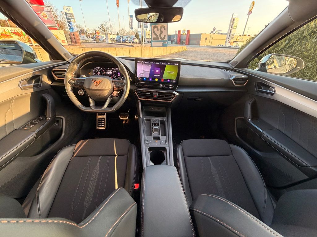 7 Lautsprecher, Airbag Beifahrerseite abschaltbar, Airbag Fahrer-/Beifahrerseite, Ambiente-Beleuchtung Smart Ambient Light, Antriebs-Schlupfregelung (ASR), Audio-Navigationssystem mit Touchscreen Farbbildschirm, Blinkleuchten LED in Außenspiegel integriert, Bluetooth-Schnittstelle mit Freisprecheinrichtung integriert, Dachhimmel schwarz, Dachreling schwarz, hochglänzend, Doppeltonhorn, Einstiegsleisten (Aluminium) vorn, beleuchtet, Elektron. Differentialsperre (XDS), Fahrassistenz-Paket L, Fahrassistenz-Paket: Stau- und Notfallassistent, Fahrassistenz-Paket: Travel Assist, Fahrassistenz-System: Adaptive Fahrwerksregelung (DCC), Fahrassistenz-System: Fahrprofilauswahl (CUPRA Drive Profile), Fahrassistenz-System: Parklenkassistent mit Einparkhilfe vorn und hinten, Fensterheber elektrisch vorn + hinten mit Komfortschaltung, Fensterzierleisten schwarz hochglänzend, Gepäckraumabdeckung / Rollo, Heckleuchten Voll-LED mit dynamischem Lichtband (Infinite Light), Isofix-Aufnahmen für Kindersitz an Rücksitz, Karosserie: 5-türig, Klimaanlage Climatronic 3-Zonen, Kombiinstrument digital (virtual cockpit), Kopf-Airbag-System, Laderaumboden variabel und herausnehmbar, Licht- und Sicht-Paket, Mittelarmlehne hinten, Mittelkonsole vorn mit Mittelarmlehne, Becherhalter, Ablagebox und Luftausströmer hinten, Motor 2,0 Ltr. - 228 kW 16V TSI, Notrufsystem, Otto-Partikelfilter (OPF), Parkbremse elektrisch, Radioempfang digital (DAB+), Radstand 2680 mm, Reserverad als Notrad, Rückfahrkamera, Rücksitzlehne geteilt/klappbar (1/3-2/3), Rücksitzlehnen umklappbar mit Fernentriegelung im Kofferraum, Schadstoffarm nach Abgasnorm Euro 6d, Seitenairbag, Seitenairbag vorn mitte (Central Airbag), Seitenscheiben hinten und Heckscheibe abgedunkelt, Sitz vorn links höhenverstellbar, Sitz vorn rechts höhenverstellbar, Sitzbezug / Polsterung: Stoff, Sonnenblende links mit Spiegel (beleuchtet), Sonnenblende rechts mit Spiegel (beleuchtet), Sport-Schalensitze vorn mit integrierten Kopfstützen, Start/Stop-Anlage, Steckdose (12V-Anschluß) vorn, Steckdose 230V im Gepäckraum, USB-Ladeanschlüsse (2-fach, Typ C) für 2.Sitzreihe, USB-Schnittstelle vorn (2-fach, Typ C), Verzurrösen Koffer-/Laderaum, Warnanlage für Sicherheitsgurt-System, Wärmeschutzverglasung, Leichtmetallräder, Nebelscheinwerfer, Seitenscheiben hinten und Heckscheibe abgedunkelt