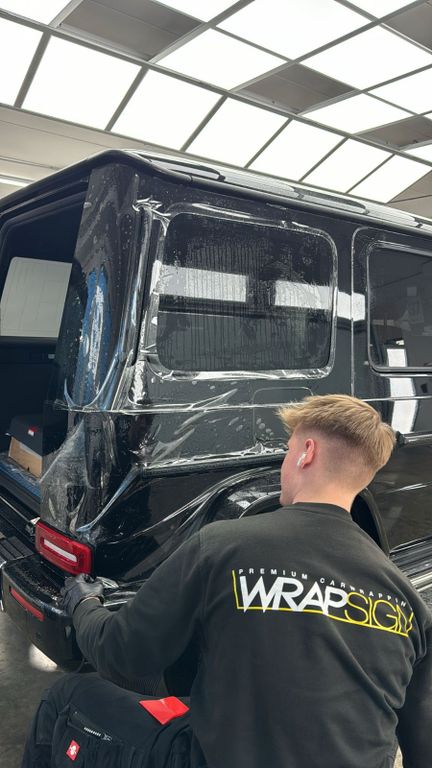 Bei dem Fahrzeug handelt es sich um einen G400 d in AMG Line-Ausstattung in OBSIDIANSCHWARZ METALLIC, dem SUPERIOR Line Interieur und dem seltenen MANUFAKTUR Schöckl Design-Paket.Der Wagen hat vom ersten Tag an eine Lackschutz-Vollfolierung mit der Premiumfolie SUNTEC Reaction kristallklar in der Variante WRAPSIGN Custommade (Folierung um bzw. über nahezu alle Ecken und Kanten) mit 12 Jahren Garantie im Gesamtwert von 10.000 Euro erhalten.