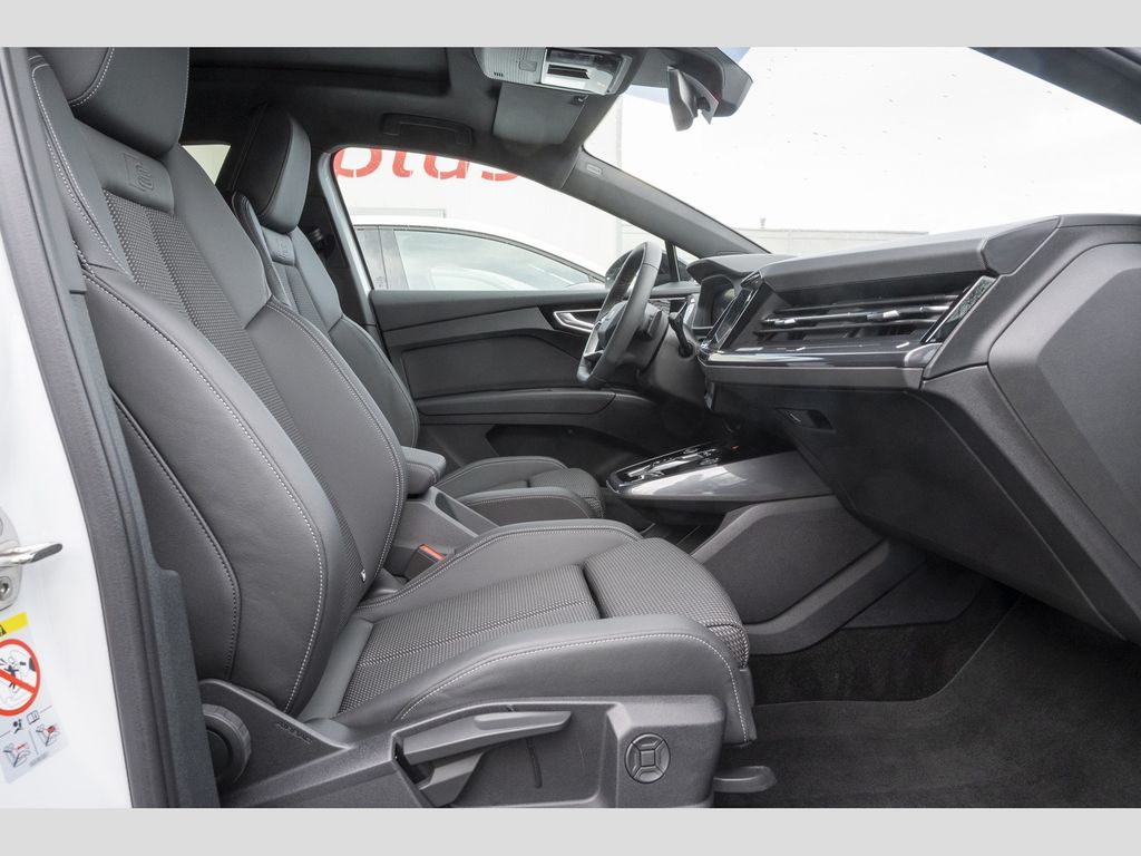 Audi connect (Notruf- und Assistance-System), Fahrassistenz-System: Notfall-Assistent mit automatischem Notruf, Vorbereitung Lichtassistent für weitere Funktionen (feature on demand, FOD), Fahrassistenz-System: Verkehrszeichenerkennung, Licht- und Regensensor, Tagfahrlicht LED, Wärmeschutzverglasung grün getönt, Frontscheibe Klarglas, Radioempfang digital (DAB), Audi music interface, Reifenkontroll-Anzeige, Audi connect (Remote / Control), Einparkhilfe hinten (APS), Farbdisplay (10,1 Zoll), Airbag Fahrer-/Beifahrerseite, Elektromotor 210 kW (cont. 89 kW).