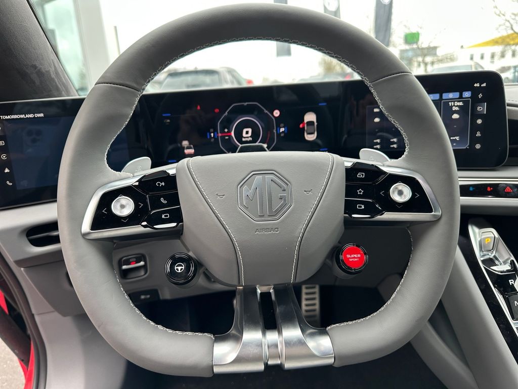 - 25-Zoll-Instrumentendisplay mit zwei 7-Zoll-Erweiterungsscreens für Navigation/Infotainment- und FunktionssteuerungDAB+8 BOSE-Premium-Lautsprecher2 MikrofoneUSB-AnschlüsseBluetoothMG iSMART mit FernsteuerfunktionSprachsteuerungNavigation mit Echtzeit-DatenApple CarPlay™/Android Auto™7-Zoll-Display zur Steuerung von Komfort-Funktionen und Fahrassistenten in der MittelkonsoleFernverriegelungSchlüsselloser ZugangAutomatischer Start (bei Druck auf das Bremspedal)Fahrersitz 6-fach verstellbarBeifahrersitz 6-fach verstellbarLeder-/Dinamica-AusführungSitzheizung vorn Stoffverdeck 20-Zoll-Leichtmetallfelgen mit roten Bremssättel Reifenreparaturset