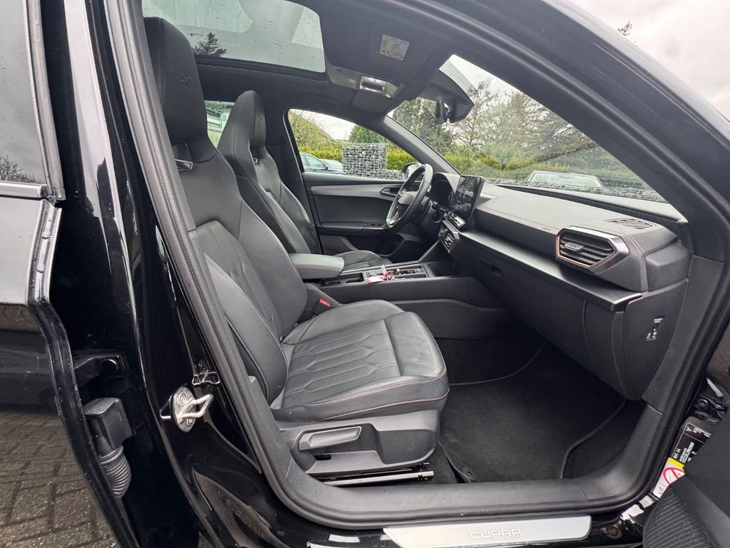 6 Lautsprecher, Airbag Beifahrerseite abschaltbar, Airbag Fahrer-/Beifahrerseite, Akustischer Fußgängerschutz, Außensound (e-sound / AVAS), Ambiente-Beleuchtung Smart Ambient Light, Antriebs-Schlupfregelung (ASR), Audio-Navigationssystem mit Touchscreen Farbbildschirm, Außenspiegel elektr. verstell-, heiz- und anklappbar mit Spiegelabsenkung und Welcome Light, Blinkleuchten LED in Außenspiegel integriert, Dachhimmel schwarz, Dachreling schwarz, hochglänzend, Doppeltonhorn, Dynamic-Paket, Einstiegsleisten (Aluminium) vorn, beleuchtet, Elektron. Differentialsperre (XDS), Fahrassistenz-System: Fahrprofilauswahl (CUPRA Drive Profile), Fahrassistenz-System: Pre-Crash-System, Fensterheber elektrisch vorn + hinten mit Komfortschaltung, Fensterzierleisten schwarz hochglänzend, Gepäckraumabdeckung / Rollo, Heckleuchten LED mit dynamischem Blinklicht, Heckleuchten Voll-LED mit Lichtband (Infinite Light), Hybrid 180 kW (Motor 1,4 Ltr. - 110 kW TSI), Induktionsladeschale für Smartphone, Isofix-Aufnahmen für Kindersitz an Rücksitz, Karosserie: 5-türig, Klimaanlage Climatronic 3-Zonen, Kombiinstrument digital (virtual cockpit), Kopf-Airbag-System, Laderaumboden variabel und herausnehmbar, Lendenwirbelstütze Sitz vorn rechts, verstellbar, Licht- und Sicht-Paket, LM-Felgen, Mittelarmlehne hinten, Mittelkonsole vorn mit Mittelarmlehne, Becherhalter, Ablagebox und Luftausströmer hinten, Mobile Online Dienste Cupra Connect, Notrufsystem, Parkbremse elektrisch, Radioempfang digital (DAB+), Reifen-Reparaturset, Rücksitzlehne geteilt/klappbar (1/3-2/3), Rücksitzlehnen umklappbar mit Fernentriegelung im Kofferraum, Schadstoffarm nach Abgasnorm Euro 6d, Seitenairbag, Seitenairbag vorn mitte (Central Airbag), Seitenscheiben hinten und Heckscheibe abgedunkelt, Sitz vorn links höhenverstellbar, Sitz vorn rechts höhenverstellbar, Sonnenblende links mit Spiegel (beleuchtet), Sonnenblende rechts mit Spiegel (beleuchtet), Sport-Schalensitze vorn mit integrierten Kopfstützen, Start/Stop-Anlage, Steckdose (12V-Anschluß) im Koffer-/Laderaum, USB-Ladeanschlüsse (2-fach, Typ C) für 2.Sitzreihe, USB-Schnittstelle vorn (2-fach, Typ C), Verzurrösen Koffer-/Laderaum, Warnanlage für Sicherheitsgurt-System, Wärmeschutzverglasung