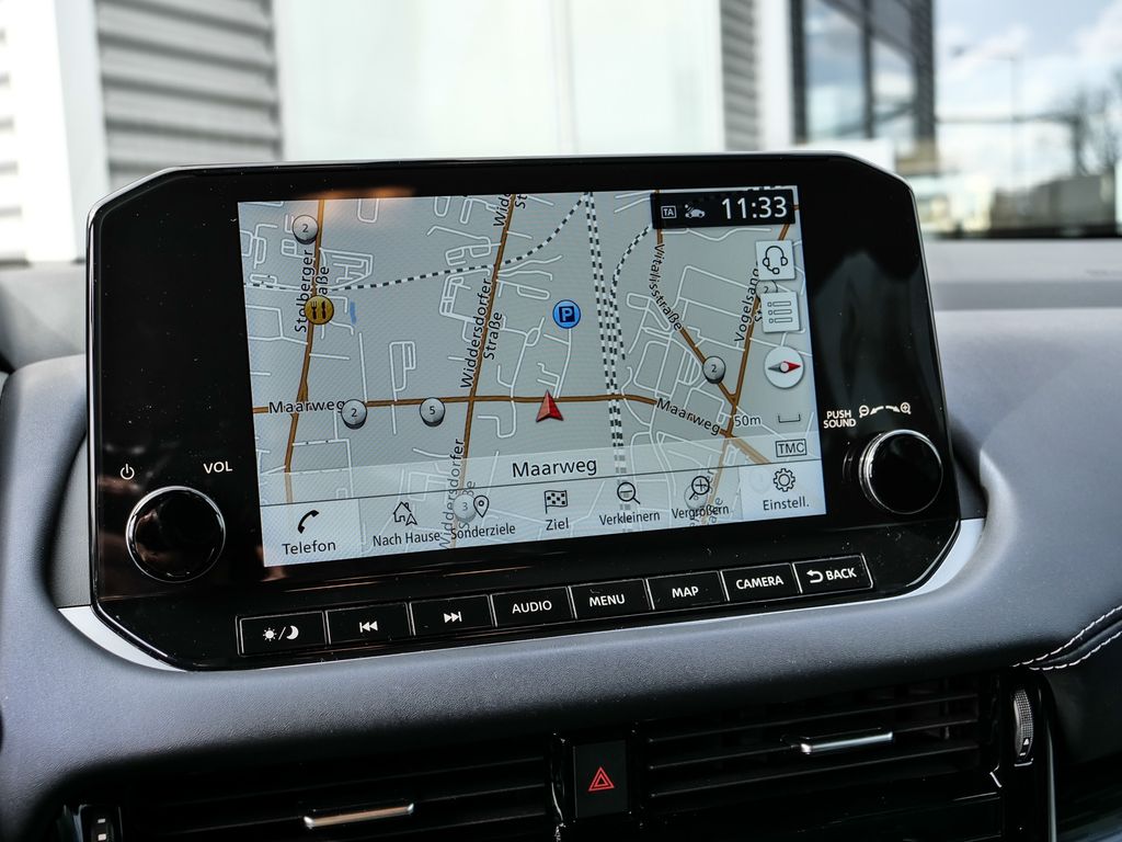 - Weiteres: Reifendruck-Kontrollsystem, Schalt-/Wählhebelgriff Leder, Rückfahrkamera, Lenksäule (Lenkrad) höhen-/längsverstellbar, Mittelarmlehne hinten mit Getränkehalter, Scheibenwischer mit Regensensor, Heckleuchten LED, Ambiente-Beleuchtung, Frontscheibe heizbar, Getriebe Automatik stufenlos - X-Tronic-CVT, Head-up-Display, Around View Monitor (360° Umgebungsansicht), Scheinwerfer Voll-LED, Schadstoffarm nach Abgasnorm Euro 6d, Fahrmodusschalter, Seitenairbag vorn mitte (Center-Airbag), LM-Felgen, Touchscreen-Farbdisplay (12,3 Zoll), Innenraumfilter: Pollenfilter, Lenkrad (Leder) mit Multifunktion, Schließ-/Startsystem intelligent key, Airbag Fahrer-/Beifahrerseite, Anti-Blockier-System (ABS), Tagfahrlicht LED, Start-Stop-Knopf, Außenspiegel elektr. verstell- und heizbar, Automatische Fahrlichtschaltung, Kopf-Airbag-System, USB-Schnittstelle, Rücksitz geteilt/klappbar, Seitenairbag, Service-System: Nissan Connect Services, Metallic-Lackierung, 12V-Steckdose, 12V-Steckdose im Laderaum, Adaptiver Fernlichtassistent, aktiver Spurhalteassistent, mit korrigierendem Bremseingriff, Ambiente-Beleuchtung erweitert, Antriebsart: Frontantrieb, Audiobedienung am Lenkrad, Audiosystem, Auffahrwarnsystem (Forward Collision Warning, FCW), Außenspiegel elektr. anklappbar, Ausstattungs-Paket: Nissan Connect Navigationssystem mit Around View Monitor, Auto-Hold-Funktion, Autom. Distanzregelung mit vorausschauender Geschw.-Regelung, Autonomer Lenk-Assistent für selbstständiges Spurhalten, Autonomer Notbrems-Assistent, Berg-Anfahr-Assistent, Blinkleuchten LED in Außenspiegel integriert, Business-Paket, Dachantenne im Haifischflossen-Design, Diebstahl-Warnanlage, Einparkhilfe vorn und hinten, Elektr. Bremskraftverteilung (EBD), elektr. Heckklappe sensorgesteuert, Elektron. Stabilitäts-Programm, Fahrersitz elektr. verstellbar, Fensterheber elektrisch vorn und hinten, Geschwindigkeits-Begrenzeranlage, Handschuhfach beleuchtet, Induktionsladeschale für Smartphone, Innenspiegel mit Abblendautomatik, Isofix-Aufnahmen für Kindersitz, Kamerasystem Around View, Keyless-Entry, Klimaautomatik 2-Zonen, Lastenverankerung / Verzurrösen, Lendenwirbelstütze elektr. verstellbar, Lenkrad heizbar, Leseleuchten vorn und hinten, Müdigkeitserkennungs-Sensor, Navigationssystem, Nebelscheinwerfer LED, Nebelschlussleuchte LED, Parkbremse elektrisch, Polster: Stoff/Kunstleder, ProPilot mit Navi-Link, Querverkehrs-Assistent Heck, Service-System: Google Services, Sicherheitssystem ERA GLONASS mit automatischem Notruf, Sitzheizung vorn, Sitzhöhenverstellung, Sitzhöhenverstellung Fahrersitz, Smartphone Schnittstelle, Sprachbediensystem Spracherkennung, Start/Stop-Anlage, Stauassistent inkl. Stop&Go-Funktion, Technologie-Paket Getriebe Automatik, Totwinkel-Assistent, USB-Anschluss im Fond, Verglasung hinten abgedunkelt, Verkehrszeichenerkennung, Winter-Paket