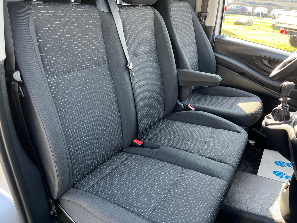 3-Tasten-Fernbedienung für Zentralverriegelung, 3. Bremsleuchte, Adaptives Bremslicht, Airbag Beifahrerseite, Airbag Fahrerseite, Anfahrhilfe (Berganfahr-Assistent), Außenspiegel asphärisch, beide, Außentemperaturanzeige, Befestigungsschienen für Dachträger, BlueEfficiency-Paket, Bremsassistent, Bremssystem mit ABS+ASR, Deckenleuchte im Laderaum, Design- und Ausstattungslinie Base, Fahrassistenz-System: Attention-Assist (Müdigkeitserkennungs-Sensor), Fahrassistenz-System: Pannenmanagement, Fahrassistenz-System: Seitenwind-Assistent, Frontscheibe mit Scheibenantenne, Generator 185 A, Getriebe 6-Gang - FSG, Getränkehalter hinten, Getränkehalter vorn, Gurtstraffer, Haltegriff Beifahrerseite, Handschuhfach abschließbar, Karosserie/Aufbau: Kasten Standard, Karosserie/Aufbau: lang, Kommunikationsmodul (LTE) für digitale Dienste, Laderaumtrennwand durchgehend, Lastenverankerung / Verzurrösen, Mercedes-Benz Notrufsystem, Modellpflege, Motor 1,7 Ltr. - 100 kW CDI KAT, Nebelschlussleuchte, Radstand 3200 mm, Schadstoffarm nach Abgasnorm Euro 6d-TEMP, Schiebetür Lade-/Fahrgastraum rechts, Sicherheitsgurt-System mit Warnanlage (Fahrer-/Beifahrerseite), Sitzbezug / Polsterung: Stoff, Stahlfelgen 6,5x16, Verkleidung Fenstersäulen, Verkleidung im Lade-/FG-Raum: Hartfaser halbhoch, Verzurrschienen im Laderaum - Seitenwand an Dachrahmen, Vlies-Batterie 92 Ah, Wartungsintervall-Anzeige Assyst, Zul. Gesamtgewicht 2,80 t