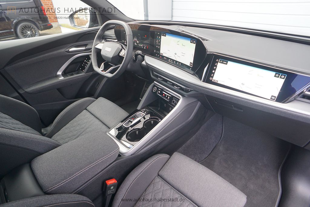 - (PQ2) Tech plus ''Matrix LED-Scheinwerfer/ digitale Lichtsignaturen/ Umgebungskameras/ Spurwechsel- und Ausstiegswarnung, Querverkehrassistent hinten und Abbiegeassistent hinten/ proaktiven Insassenschutz Front, Seite und Heck/ Spurverlassenswarnung mit Notfallassistent/ Insassenerkennung im Fond/ Seitenairbags vorn und hinten mit Kopfairbagsystem und Interaktionsairbag vorn/ MMI Beifahrerdisplay/ Komfortpaket plus mit Außenspiegeln elektrisch einstell-, beheizbar und anklappbar, beidseitig automatisch abblendend, Innenspiegeln automatisch abblendend, Projektionsleuchte in den Außenspiegeln, Komfortschlüssel ohne Safelock und mit digitalem Schlüssel/ LED-Heckleuchten pro/ 3-Zonen-Komfortklimaautomatik/ adaptiven Geschwindigkeitsassistenten/ Einparkhilfe plus mit Distanzanzeige/ Parkassistent plus/ MMI experience plus mit Audi Application Store und Smartphone-Interface sowie Audi Soundsystem/ Sitzheizung vorn/ Scheinwerfer-Reinigungsanlage''