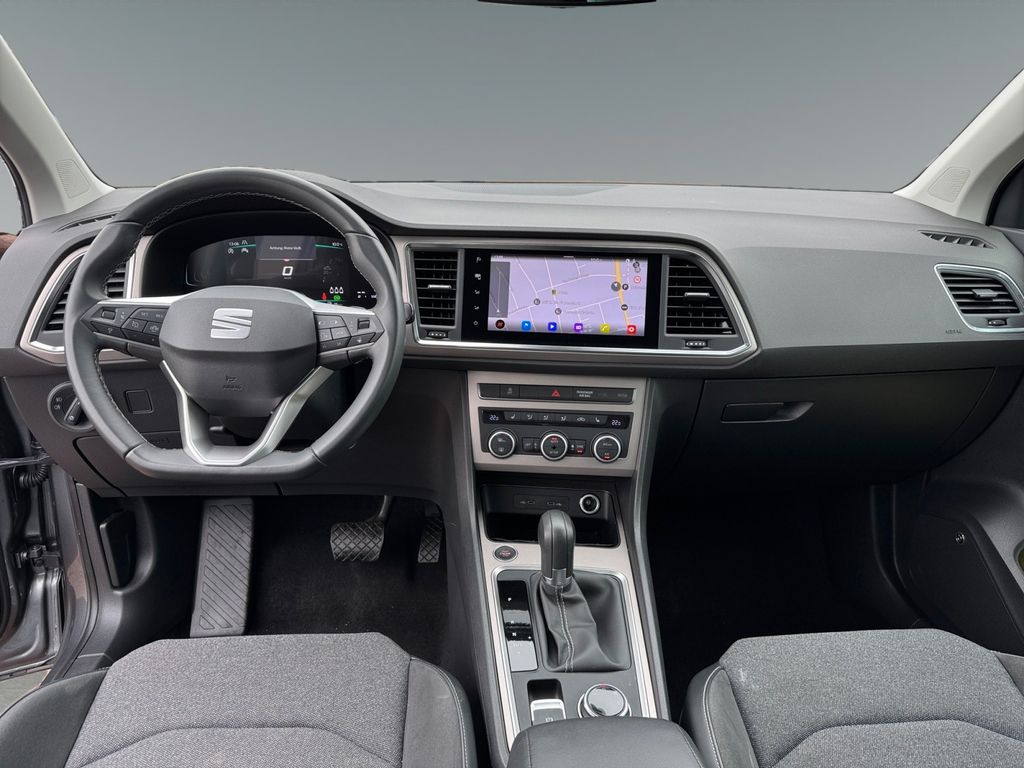 3. Bremsleuchte, Ablagetasche an Vordersitzlehnen, Airbag Beifahrerseite abschaltbar, Airbag Fahrer-/Beifahrerseite, Antriebs-Schlupfregelung (ASR), Außenspiegel elektr. verstell-, heiz- und anklappbar mit Spiegelabsenkung, Außenspiegel Wagenfarbe, Blinkleuchten LED in Außenspiegel integriert, Bluetooth-Schnittstelle mit Freisprecheinrichtung integriert, Bordcomputer, Brillenfach, Design-Paket Exterieur, silber, Doppeltonhorn, Einparkhilfe hinten, Einstiegsleisten beleuchtet, Elektron. Querdifferentialsperre (XDS), Fahrassistenz-System: Berganfahr-Assistent (Hill-Holder), Fahrassistenz-System: Fahrprofilauswahl (SEAT Drive Profile), Fahrassistenz-System: Müdigkeitserkennung, Fahrassistenz-System: Spurhalteassistent, Fahrassistenz-System: Umfeldbeobachtungssystem (Front assist) mit City-Notbremsfunktion, Fahrassistenz-System: Verkehrszeichenerkennung, Fensterheber elektrisch vorn + hinten mit Komfortschaltung, Gepäckraumabdeckung / Rollo, Handschuhfach beleuchtet, Heckleuchten LED mit dynamischem Blinklicht, Innenraumlicht-Paket LED, Isofix-Aufnahmen für Kindersitz, Karosserie: 5-türig, Klimaanlage Climatronic 2-Zonen, Knieairbag Fahrerseite, Kofferraumbeleuchtung, Kombiinstrument digital (virtual cockpit), Kopf-Airbag-System, Lendenwirbelstütze Sitz vorn links, verstellbar, Lendenwirbelstütze Sitz vorn rechts, verstellbar, Licht- und Sicht-Paket, LM-Felgen, Mittelarmlehne hinten, Mittelkonsole vorn mit Mittelarmlehne, Becherhalter, Ablagebox und Luftdüsen hinten, Modellpflege, Motor 1,5 Ltr. - 110 kW 16V TSI ACT, Nebelscheinwerfer LED mit Abbiegelicht, Notrufsystem, Otto-Partikelfilter (OPF), Parkbremse elektrisch mit Auto-Hold-Funktion, Radstand 2638 mm, Reifen-Reparaturset, Reifenkontroll-Anzeige, Rückfahrkamera, Rücksitzlehne geteilt/klappbar (1/3-2/3), Schadstoffarm nach Abgasnorm Euro 6e, Schalt-/Wählhebelgriff Leder, Scheinwerfer Voll-LED, Schließ-/Startsystem Kessy, SEAT Media-System Plus, Seitenairbag, Seitenscheiben hinten und Heckscheibe abgedunkelt, Sitz vorn links höhenverstellbar, Sitz vorn rechts höhenverstellbar, Sitzbezug / Polsterung: Stoff, Sonnenblende links mit Spiegel (beleuchtet), Sonnenblende rechts mit Spiegel (beleuchtet), Start/Stop-Anlage, Stau-/Ablagefach unter Sitz vorn links, Steckdose (12V-Anschluß) vorn, USB-Ladeanschlüsse (2-fach, Typ C) für 2.Sitzreihe, Verzurrösen Koffer-/Laderaum, Wärmeschutzverglasung