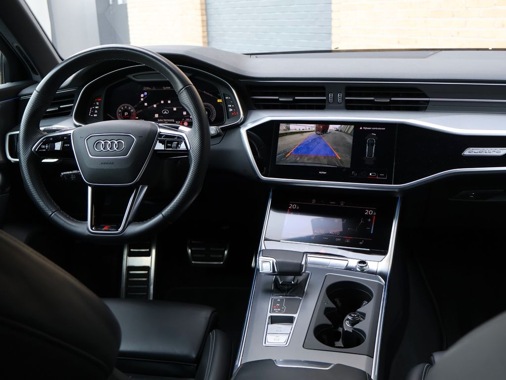 The exterior is finished in stylish Mythos Black metallic, a color that perfectly emphasizes the A6's lines. The S line exterior package provides a sporty look with sharply designed bumpers and accents. The S6 rear bumper is particularly special, giving the car that extra touch of distinction and dynamism. The 21-inch alloy wheels, Matrix LED headlights, and privacy glass complete the look.