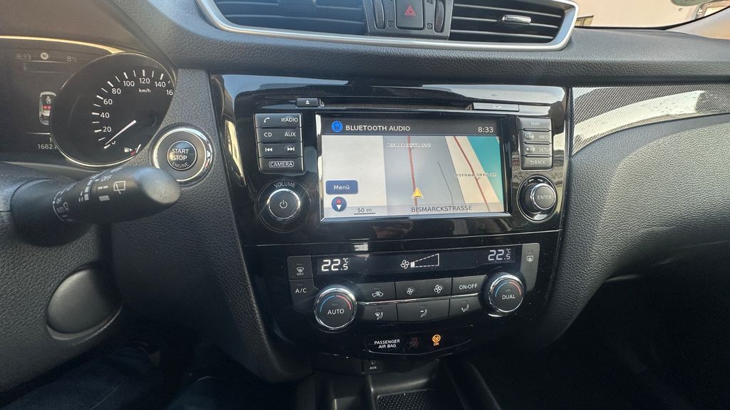 3. Bremsleuchte, Airbag Beifahrerseite abschaltbar, Airbag Fahrer-/Beifahrerseite und Seitenairbag vorn, Audio-/Bordcomputerbedienung am Lenkrad, Audiosystem: Radio/CD-Player mit 6 Lautsprecher, Ausstattungs-Paket: Nissan Connect mit Around View Monitor, Automatische Fahrlichtschaltung, Außenspiegel elektr. verstell- und heizbar, Bordcomputer, Bremsassistent (Nissan Brake-Assist), Coming-Home-Lichtfunktion (Friendly Lightning), Einparkhilfe, Fahrassistenz-Paket Acenta, Fahrassistenz-System: Aktive Fahrkomfortregelung (Fahrwerksdämpfung), Fahrassistenz-System: Berganfahr-Assistent, Fahrassistenz-System: Kurvenbremskontrolle (Aktive Spurkontrolle), Fensterheber elektrisch vorn + hinten, Fernentriegelung Tankklappe, Freisprechanlage Bluetooth, Frontscheibe Verbundglas, Gurtstraffer, Heckscheibe heizbar, Innenspiegel mit Abblendautomatik, Isofix-Aufnahmen für Kindersitz, Karosserie: 5-türig, Kindersicherung, Klimaautomatik 2-Zonen, Komfortsitz vorn links, Komfortsitz vorn rechts, Kopf-Airbag-System, Kopfstützen vorn verstellbar, Lendenwirbelstütze Sitz vorn links, Lenksäule (Lenkrad) höhen-/längsverstellbar, Leseleuchte vorn, Mittelarmlehne hinten mit Getränkehalter, Motor 1,6 Ltr. - 96 kW dCi Turbodiesel KAT, Nebelschlussleuchte, Parkbremse elektrisch, Radstand 2706 mm, Reifendruck-Kontrollsystem, Reserverad als Notrad, Rücksitzbank verschiebbar, Schadstoffarm nach Abgasnorm Euro 6, Schalt-/Wählhebelgriff Leder, Schaltpunktanzeige, Sitz vorn links höhenverstellbar, Sitzausstattung: 5-Sitzer, Sitzbezug / Polsterung: Stoff, Sitzheizung vorn, Sonnenblenden mit Spiegel (beleuchtet), Start/Stop-Anlage, Steckdose (12V-Anschluß) in Mittelkonsole, Style-Paket, Türgriffe außen verchromt, USB-Schnittstelle, Verglasung hinten abgedunkelt, Wärmeschutzverglasung mit UV-Schutz