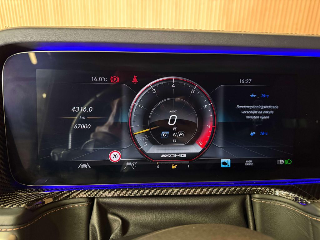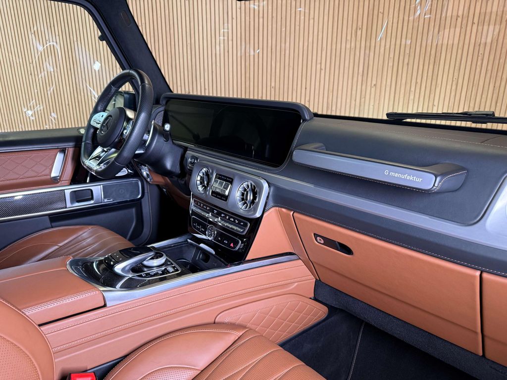 Onze G heeft niet enkel de prestaties maar ook de looks zijn een absolute streling voor het oog ; sjiek Monza grijs magno (matbruin) metallic met zadelbruin nappaleder interieur. De sportieve look wordt extra geaccentueerd met de rode remklauwen, het nightpakket, de de zwarte 22" AMG-velgen, warmtewerend getint glas en de dark chrome radiatorgrille. Zowat alle verkrijgbare opties zijn aangevinkt bij de bestelling van dit Belgisch voertuig waardoor deze G63 als 'compleet uitgerust' mag bestempeld worden.