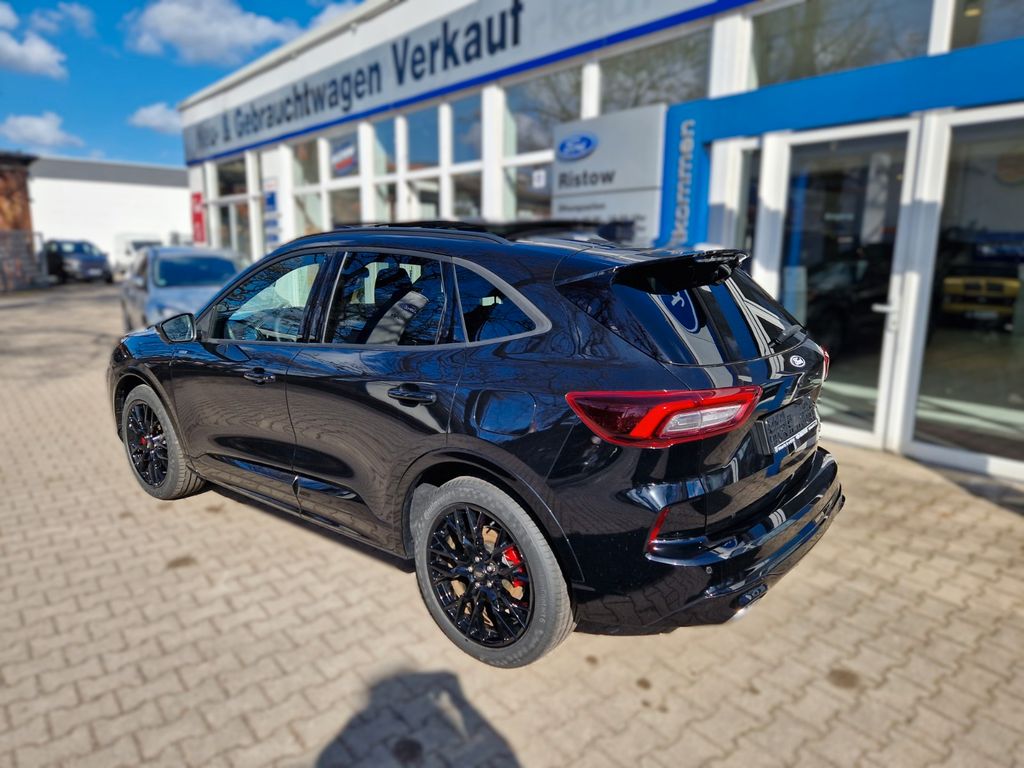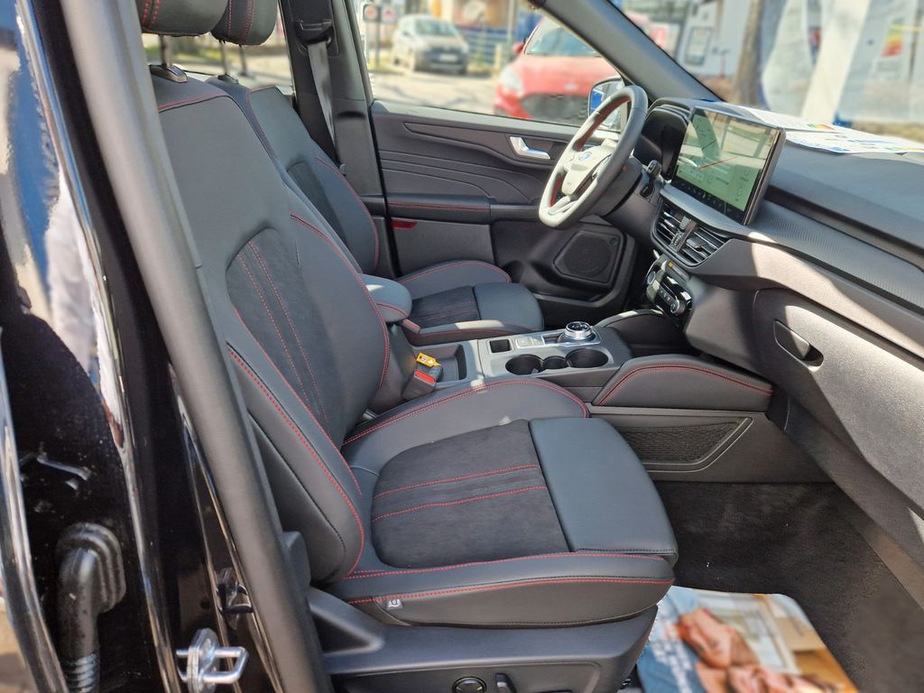Ambiente-Beleuchtung vorn (LED), Antischlupfregelung (ASR), Audio-Navigationssystem Ford mit AppLink, Außenspiegel elektr. anklappbar, Außenspiegel elektr. verstell- und heizbar, mit Memory, Body-Styling-Paket, Bordcomputer, Bremssättel Rot lackiert, Dachhimmel Stoff, dunkel, Dachreling schwarz, Dachspoiler (große Ausführung) Wagenfarbe, Doppelendrohr Auspuffanlage, Eco-Anzeige für verbrauchsoptimiertes Fahren (EcoCoach), Einstiegschienen mit Modell-Schriftzug, Elektromotor 92 kW (Hybridantrieb), Fahrassistenz-Paket, Fahrassistenz-System: Fahrspur-Pilot, Fahrassistenz-System: Notbrems-Assistent, Fahrassistenz-System: Post-Collision-System, Fahrassistenz-System: Pre-Collision-System mit Querverkehrs-Assistent (Kamera- und Radar-basiert), Fahrassistenz-System: Spurhalteassistent, Fahrassistenz-System: Verkehrsschildassistent, Fensterheber elektrisch vorn + hinten mit Komfortschließung, FordPass Connect inkl. eCall, Fußmatten ST-Design, Gepäckraumabdeckung / Rollo, Getriebe Automatik - ECVT, Heckleuchten LED, Hybrid 140 kW (Motor 2,5 Ltr. - 112 kW), Induktionsladeschale für mobile Endgeräte, Innenspiegel mit Abblendautomatik, Intelligent Protection System (IPS), Intelligenter Geschwindigkeits-Begrenzer, Isofix-Aufnahmen für Kindersitz, Karosserie: 5-türig, Kindersicherung elektrisch, Klimaautomatik 2-Zonen, Kofferraumdeckel / Heckklappe elektr. betätigt (Öffnung, sensorgesteuert), Kombiinstrument Digitalanzeige 12,3 Zoll, Kopfstützen vorn 4-fach verstellbar, Lackierung Blazer-Blau uni, Lendenwirbelstütze Sitz vorn links, Lendenwirbelstütze Sitz vorn rechts, Lenkrad (Sport/Leder, ST), Lenksäule (Lenkrad) höhen-/längsverstellbar, LM-Felgen, Mittelarmlehne hinten, Modellpflege, My Key (2. Fahrzeugschlüssel programmierbar), Off-Road Multi-Meter-Anzeigen inkl. Neigungswinkel, Kompass, Parkbremse elektrisch mit Auto-Hold-Funktion, Parkpilotsystem vorn und hinten, Pedale Aluminium, Radstand 2710 mm, Reifendruck-Kontrollsystem, Rücksitzlehne geteilt, Rücksitzlehne klappbar, Schadstoffarm nach Abgasnorm Euro 6d, Schalt-/Wählhebelgriff Aluminium, Scheibenrahmen schwarz, Scheinwerfer mit Ausschaltverzögerung, Scheinwerfer-Assistent mit Tag-/Nachtsensor, Seitenscheiben vorn Akustikglas, Sitz vorn links elektr. verstellbar (12-fach), Sitz vorn rechts elektr. verstellbar (12-fach), Sitzbezug / Polsterung: Kunstleder / Stoff Wildleder Optik, Sitzheizung vorn, Sonnenblende links mit Spiegel (beleuchtet), Sonnenblende rechts mit Spiegel (beleuchtet), Verglasung hinten abgedunkelt (Privacy Glass), Head-up-Display, Innenspiegel automatisch abblendend, Geschwindigkeitsbegrenzer mit vorausschauender Regelung, Regensensor, Sitzheizung vorn