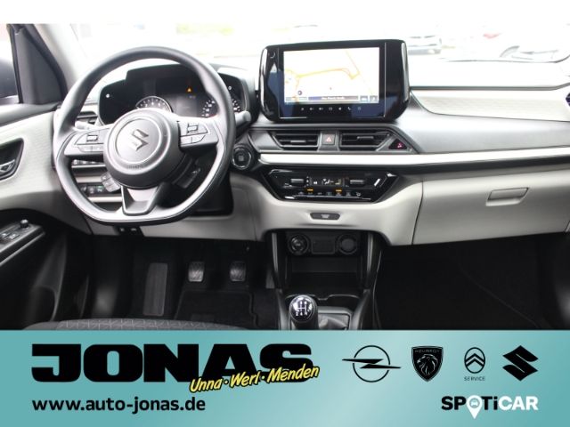 - Weiteres: - Audio-System (inkl.DAB+) m. Smartphone-Anbindung inkl. Navi, Bluetooth Freisprecheinrichtung u. Lenkradbed. - 9 Zoll Display mit HD-Auflösung - 2 Lautsprecher - USB-A Anschluss - SUZUKI CONNECT - Zentralverriegelung mit Funkfernbedienung - Keyless Start (schlüsselloses Einsteigen und Starten mit Starterknopf) - Außenspiegel beheizbar - Außenspiegel elektrisch verstellbar - LED-Scheinwerfer (Projektor Design) - Lichtsensor - Fernlichtassistent - Manuelle Leuchtweitenregulierung - LED-Tagfahrlicht - Guide me Light - Ultraviolett (UV) absorbierende Scheiben (Frontscheibe und vordere Seitenscheiben) - Außenspiegel in Dachfarbe - Dachkantenspoiler - 15-Stahlfelgen (Bereifung 175/65 R15) inkl. Radzierblenden - Klimaanlage mit Pollenfilter - Fensterheber vorn und hinten elektrisch - Adaptiver Tempomat (ACC) mit Berücksichtigung erkannter Geschwindigkeitsbegrenzungen - Polsterung schwarz - Rücksitzlehne im Verhältnis 60:40, separat umklappbar - Lenkrad höhen- und längsverstellbar - Mittelkonsole mit Ablagefach und Getränkehaltern - Sonnenblende vorn mit Schminkspiegel (Fahrerseite) - Haltegriff (Beifahrerseite vorne) - Farbiges LCD-Multifunktionsdisplay - 12V- Anschluß in Mittelkonsole - Dual-Sensor gestützte aktive Bremsunterstützung (DSBS) mit Frontalaufprall- u. Querverkehrserkennung - Müdigkeitserkennung - Spurhaltewarnsystem mit Lenkeingriff und Spurhaltefunktion - Verkehrszeichenerkennung mit optischer u. akustischer Warnung bei Überschreitung der Geschwindigkeit - Toter Winkel-Warnsystem - Ausparkassistent (RCTA-Warnung beim rückwärtigen Ausparken vor querendem Verkehr hinter dem Fahrzg.) - Alarmanlage - Berganfahrhilfe - Rückfahrkamera - Einparkhilfe hinten - eCall (automatischer Notruf) - Unfalldatenspeicher - Airbags vorn für Fahrer und Beifahrer - Beifahrerairbag vorn, abschaltbar - Seitenairbags vorn - Vorhangairbags vorn und hinten - Dreipunkt-Sicherheitsgurte vorn und hinten je Sitzplatz - Gurtstraffer und Gurtkraftbegrenzer vorn - Reifendruck-Kontrollanzeige - ISOFIX-Kindersitzbefestigungen auf den beiden äußeren Fondsitzen