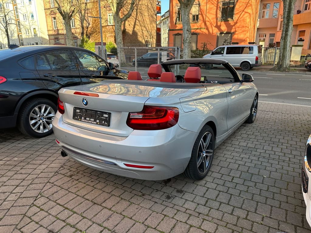 3. Bremsleuchte, Airbag Fahrer-/Beifahrerseite, Audiosystem BMW Professional (Radio/CD-Player MP3-fähig), Außenspiegel elektr. verstell- und heizbar, Außentemperaturanzeige, Blinkleuchte in Außenspiegel integriert, Blinkleuchten LED, Bordcomputer, Bremsassistent, Check-Control-System, Design- und Ausstattungslinie Sport Line, Dynamische Bremsleuchte, Dynamische Tractions Control (DTC), Erste Hilfe-Kasten / Verbandkasten, Fahrassistenz-System: Anfahr-Assistent, Farbmonitor (6,5 Zoll), Freisprecheinrichtung Bluetooth mit USB-/Audio-Schnittstelle, Fußmatten Velours, Isofix-Aufnahmen für Kindersitz an Rücksitz, Karosserie: 2-türig, Lenksäule (Lenkrad) mechan. verstellbar, Motor 1,5 Ltr. - 100 kW 12V, Nichtraucher-Paket, Personalisierungssystem (Personal Profile), Reifendruck-Kontrollsystem, Schadstoffarm nach Abgasnorm Euro 6, Schaltpunktanzeige, Scheibenwaschdüsen heizbar, Seitenairbag, Service-System: Intelligenter Notruf inkl. TeleServices, Sitze vorn mechanisch verstellbar, Start-Stop-Knopf, Start/Stop-Anlage (Funktion), Steckdose (12V-Anschluß) zusätzlich, Verdeck schwarz, Warndreieck, Wärmeschutzverglasung getönt, Überschlag-Schutzsystem (aktiver Überrollbügel)