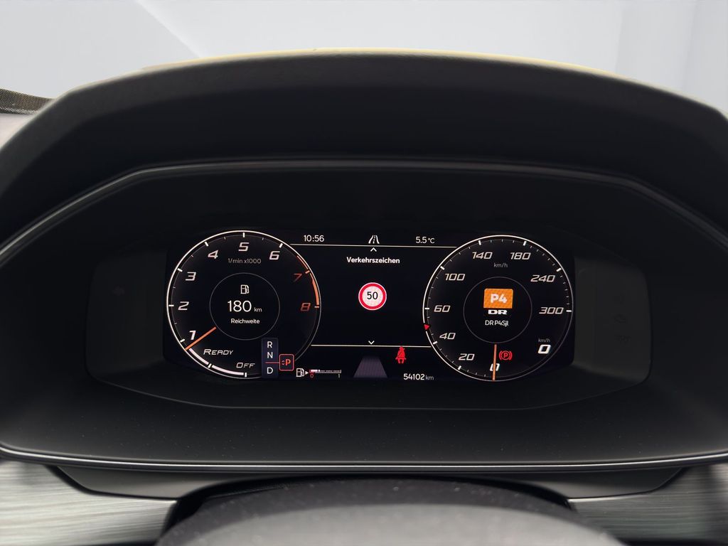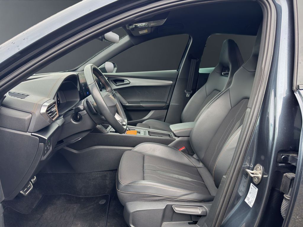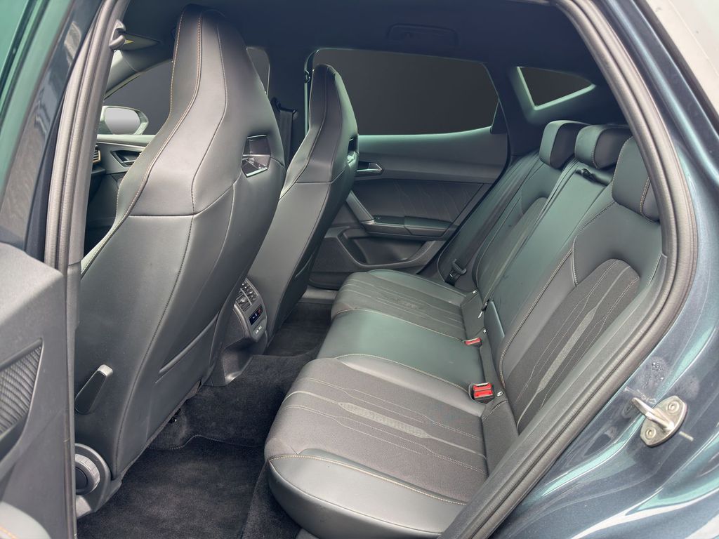 Interieur: Laderaumabdeckung, Fahrersitz höhenverstellbar, Beifahrersitz höhenverstellbar, Ambiente-Beleuchtung Smart Ambient Light, Dachhimmel schwarz, Einstiegsleisten (Aluminium) vorn, Innenspiegel mit Abblendautomatik, Isofix-Aufnahmen für Kindersitz an Rücksitz, Kombiinstrument digital (virtual cockpit), Lendenwirbelstütze Sitz vorn links verstellbar, Lendenwirbelstütze Sitz vorn rechts verstellbar, Lenkrad heizbar (CUPRA Supersport, Leuchtweitenregelung automatisch, Licht- und Sicht-Paket, Mittelarmlehne hinten, Mittelkonsole vorn mit Mittelarmlehne, Becherhalter, Ablagebox und Luftausströmer hinten, Rücksitzlehne geteilt/klappbar (1/3-2/3), Rücksitzlehnen umklappbar mit Fernentriegelung im Kofferraum, Seitenscheiben hinten und Heckscheibe abgedunkelt, Sitz vorn links höhenverstellbar, Sitzbezug / Polsterung: Stoff, Sonnenblende links mit Spiegel (beleuchtet), Sonnenblende rechts mit Spiegel (beleuchtet), Sport-Schalensitze vorn mit integrierten Kopfstützen, Steckdose (12V-Anschluß) vorn, Wärmeschutzverglasung,