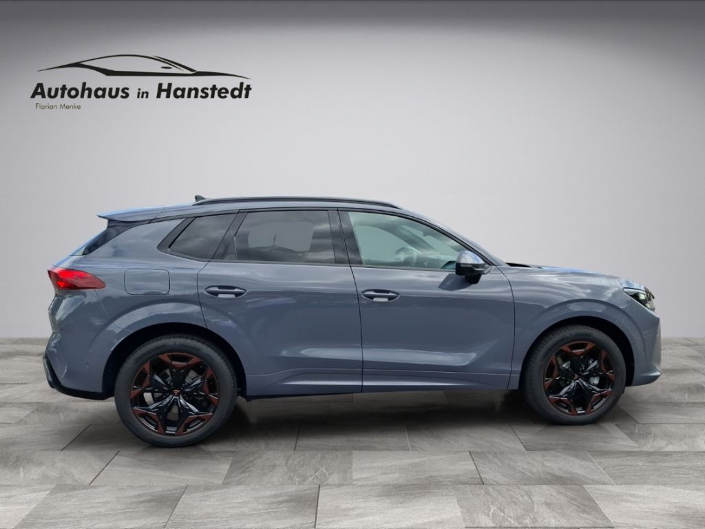 - Weiteres: Antriebsart: Allradantrieb, Geschwindigkeits-Regelanlage (Tempomat), Rückfahrkamera, Notrufsystem, Nebelscheinwerfer LED mit Abbiegelicht, USB-Schnittstelle vorn (2-fach, Typ C), Elektron. Stabilitäts-Programm (ESP) mit Bremskraftverstärker elektro-mechanisch, Scheinwerfer Voll-LED, Seitenairbag vorn mitte (Central Airbag), Startanlage Keyless Go (Start-Stop-Knopf), Getriebe 7-Gang - Doppelkupplungsgetriebe DSG, Isofix-Aufnahmen für Kindersitz an Beifahrersitz und Rücksitz (inkl. i-Size-Kindersitze), Kombiinstrument digital (10,25 Zoll), Schadstoffarm nach Abgasnorm Euro 6e, Fahrassistenz-System: Ablenkungs- und Müdigkeitserkennung, Geschwindigkeitsbegrenzer mit vorausschauender Geschw.-Regelung, Lichtassistent (Coming Home, Leaving Home), Connectivity-Box, Audiosystem mit 12,9Zoll Touchscreen-Farbdisplay, Motor 2,0 Ltr. - 150 kW 16V TSI, Leuchtweitenregelung automatisch, LM-Felgen, Heckklappe/-Deckel elektr. betätigt (öffnen + schliessen, sensorgesteuert), Lenkrad heizbar (Sport/Leder) mit Multifunktion und Schaltfunktion, Welcome Light, Memory, HD Matrix-LED-Scheinwerfer, Kamerasystem Umgebungsansicht (Top View, 360°), Mobile Online Dienste Cupra Connect plus, Fahrassistenz-System: Spurhalteassistent Plus inkl. Travel Assist, Emergency Assist und Stauassistent, LM-Felgen 8,5x19 (Cosmic Copper, schwarz / Copper, glanzgedreht), Edge-Paket, Sitzbezug / Polsterung: Stoff Dinamica / Kunstleder Soul Black , Design-Paket Dynamic, Advanced-Paket, Intelligent-Drive-Paket XL, Kopf-Airbag-System, Seitenairbag, Licht- und Regensensor, Airbag Fahrer-/Beifahrerseite, Heckleuchten LED mit dynamischem Blinklicht, Parkbremse elektrisch mit Auto-Hold-Funktion, Full Link (MirrorLink, Apple CarPlay und Android Auto), Tagfahrlicht LED, Ambiente-Beleuchtung Smart Ambient Light, Abbiegebremsfunktion und Ausweichunterstützung, Adaptive Fahrwerksregelung (DCC), Automatische Distanzregelung (ACC), Beifahrerairbag abschaltbar, Berg-Anfahr-Assistent, Climatronic 3-Zonen, Diebstahl-Warnanlage mit Innenraumüberwachung und Abschleppschutz, Einparkhilfe vorn und hinten, elektr. Fahrersitz/Memory, Fahrprofilauswahl (CUPRA Drive Profile), Fernlichtassistent, Fußraumbeleuchtung LED, Privacy Glass, Innenspiegel mit Abblendautomatik, Intelligenter Parkassistent inkl. trainiertem Parken, Kreuzungs-Assistent, LED, Media-System Plus, Performance-Paket, Pre-Crash-System, Progressivlenkung, Radioempfang digital (DAB+), Schließ -/ Startsystem Kessy, Sitzheizung vorn, Sport-Schalensitze vorn, Sprachsteuerung, Spurhalteassistent, Subwoofer, Totwinkel-Assistent mit Auspark-Assistent, Spurwechselassistent und Ausstiegswarnung