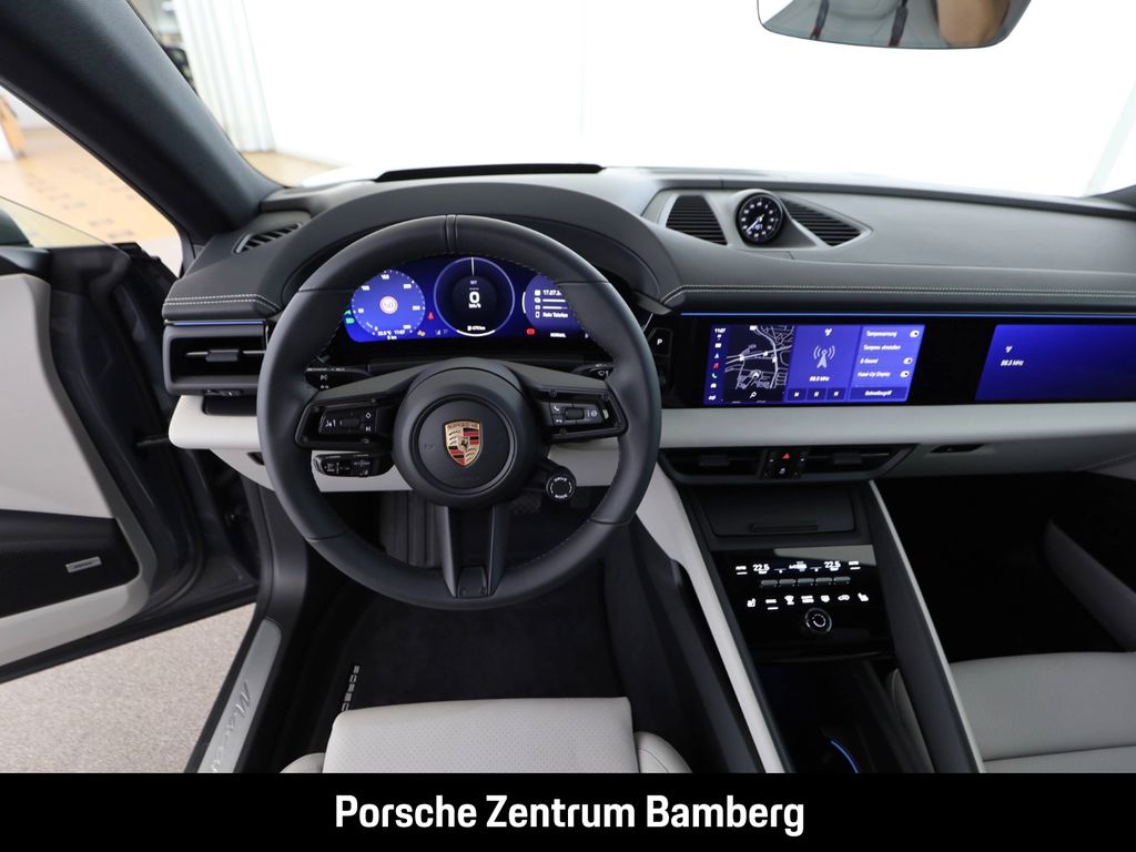 - Weiteres: (3FU) Panorama Dachsystem, (6H5) Sideblades lackiert in Schwarz (hochglanz), (3S2) Dachreling Aluminium schwarz, (QJ4) Seitenscheibenleisten in Schwarz (hochglanz), (1M9) Ausklappbare Anhängezugvorrichtung, (0NA) Entfall Modellbezeichnung, (1N3) Servolenkung Plus, (0N5) Hinterachslenkung, (1BK) Adaptive Luftfederung mit Niveauregulierung und Höhenverstellung inkl. Porsche Active Suspension Management (PASM), (8LH) Sport Chrono Paket, (GM3) Porsche Electric Sport Sound, (1NP) Radnabenabdeckungen mit farbigem Porsche Wappen, (1G8) Reifendichtmittel mit elektrischem Kompressor, (54Q) 21-Zoll Macan Turbo Räder, (3J7) Porsche Wappen auf Kopfstützen (Vordersitze), (Q2J) Komfortsitze vorn (14-Wege, elektrisch), (2FJ) Multifunktions GT-Sportlenkrad in Leder inkl. Lenkradheizung und Mode-Schalter, (4A4) Sitzheizung vorn und hinten, (GT0) Akzent-Paket schwarz, (JH2) Beifahrerdisplay, (9VL) BOSE® Surround Sound-System, (8IV) Matrix-LED-Hauptscheinwerfer abgedunkelt, (UD1) LED-Türprojektoren PORSCHE Schriftzug, (4L6) Automatisch abblendende Innen- und Außenspiegel, (8M1) Heckscheibenwischer, (VW1) Privacy-Verglasung, (KS5) Augmented Reality Head-Up Display, (PX6) Surround View inkl. Aktive Einparkunterstützung, (8T3) Abstandsregeltempostat, (9Z3) 230-V-Steckdose im Laderaum