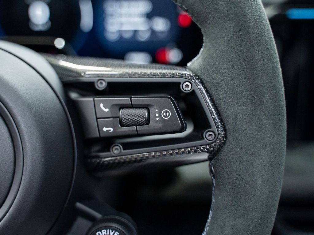 Beheizbares Multifunktions-GT-Sportlenkrad in Race-Tex mit Carbon-Einlage.
