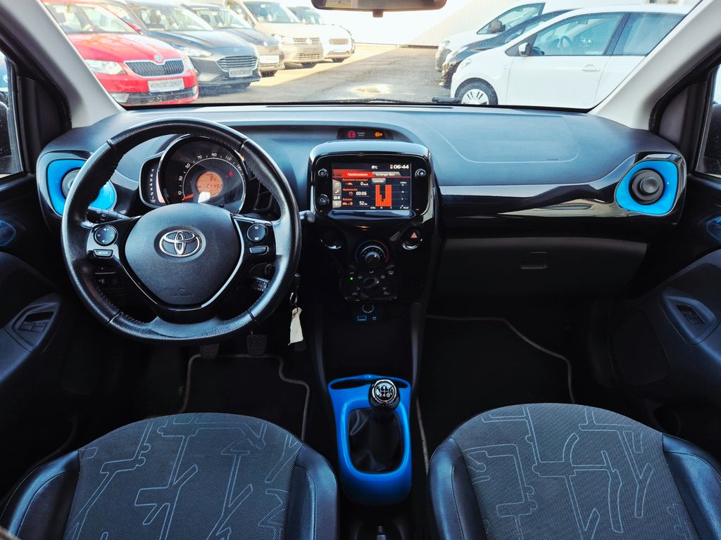3. Bremsleuchte, Airbag Beifahrerseite abschaltbar, Airbag Fahrer-/Beifahrerseite, Audiosystem: Multimedia Toyota x-touch mit Rückfahrkamera, Außenspiegel elektr. verstell- und heizbar, Außenspiegel Kontrastfarbe, Außentemperaturanzeige, Bordcomputer, Bremsassistent, Drehzahlmesser, Elektr. Bremskraftverteilung, Fahrassistenz-System: Berganfahrkontrolle (HAC), Frontgrill X-Element, Pianolack, Frontgrill X-Verlängerung, mattschwarz, Gepäckraumabdeckung / Rollo, Heckscheibe heizbar, Heckscheibenwischer, Heckschürze, schwarz matt, Innenausstattung: Anthrazit, Isofix-Aufnahmen für Kindersitz, Karosserie: 5-türig, Kopf-Airbag-System, Lenksäule (Lenkrad) höhenverstellbar, LM-Felgen, Modellpflege, Motor 1,0 Ltr. - 53 kW KAT, Reifen-Reparaturkit, Reifendruck-Kontrollsystem, Rücksitz geteilt, Rücksitz klappbar, Schadstoffarm nach Abgasnorm Euro 6, Schalt-/Wählhebelgriff Leder, Seitenairbag vorn, Sitz vorn links höhenverstellbar, Sitzbezug / Polsterung: Stoff/Leder, Sonderlackierung, Steckdose (12V-Anschluß) in Mittelkonsole, Stoßfänger Wagenfarbe, Türgriffe außen Wagenfarbe, Türgriffe innen verchromt, Verglasung hinten abgedunkelt, Warnanlage für Sicherheitsgurte hinten, Warnanlage für Sicherheitsgurte vorn, Wärmeschutzverglasung getönt, X-business-Paket
