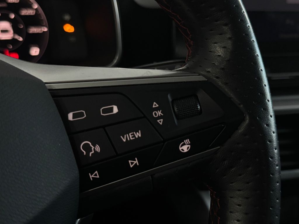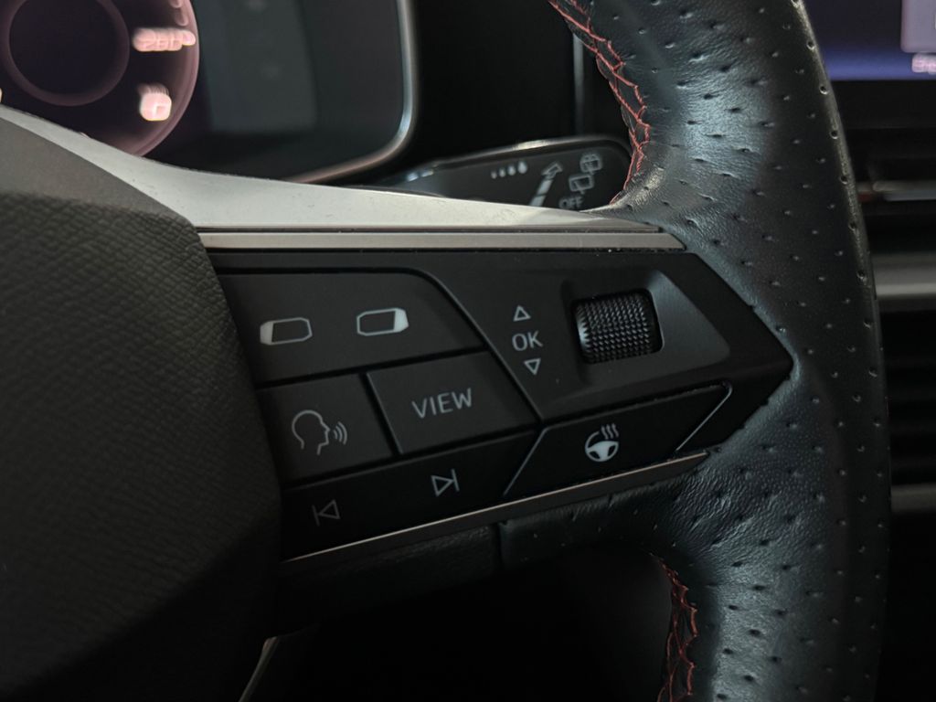 6 Lautsprecher, Ablagetasche an Vordersitzlehnen, Airbag Beifahrerseite abschaltbar, Airbag Fahrer-/Beifahrerseite, Akustischer Fußgängerschutz, Außensound (e-sound / AVAS), Antriebs-Schlupfregelung (ASR), Audio-Navigationssystem mit Touchscreen Farbbildschirm, Außenspiegel elektr. verstell-, heiz- und anklappbar mit Spiegelabsenkung, Außenspiegel grau, Blinkleuchten LED in Außenspiegel integriert, Bluetooth-Schnittstelle mit Freisprecheinrichtung integriert, Bordcomputer, Dachreling, Doppeltonhorn, Durchladeeinrichtung (Mittelarmlehne hinten), Einstiegsleisten beleuchtet, Elektron. Querdifferentialsperre (XDS), Fahrassistenz-System: Fahrprofilauswahl (SEAT Drive Profile), Fahrassistenz-System: Müdigkeitserkennung, Fahrassistenz-System: Spurhalteassistent, Fahrassistenz-System: Umfeldbeobachtungssystem (Front assist) mit City-Notbremsfunktion, Fensterheber elektrisch vorn + hinten mit Komfortschaltung, Gepäckraumabdeckung / Rollo, Geschwindigkeits-Regelanlage (Tempomat) inkl. Geschw.-Begrenzer, Handschuhfach beleuchtet, Heckleuchten Voll-LED mit dynamischem Lichtband (Infinite Light), Hybrid 150 kW (Motor 1,4 Ltr. - 110 kW TSI), Induktionsladeschale für Smartphone, Innenraumlicht-Paket LED, Isofix-Aufnahmen für Kindersitz, Karosserie: 5-türig, Klimaanlage Climatronic 3-Zonen, Kofferraumbeleuchtung, Kombiinstrument digital (virtual cockpit), Kopf-Airbag-System, Lendenwirbelstütze Sitz vorn links, verstellbar, Lendenwirbelstütze Sitz vorn rechts, verstellbar, Lenkrad (Sport/Leder) mit Multifunktion, LM-Felgen, Mobile Online Dienste Seat Connect, Nebelscheinwerfer LED mit Abbiegelicht, Notrufsystem, Otto-Partikelfilter (OPF), Parkbremse elektrisch mit Auto-Hold-Funktion, Radioempfang digital (DAB+), Reifen-Reparaturset, Reifenkontroll-Anzeige, Rücksitzlehne geteilt/klappbar (1/3-2/3), Rücksitzlehnen umklappbar mit Fernentriegelung im Kofferraum, Schadstoffarm nach Abgasnorm Euro 6d, Schalt-/Wählhebelgriff Leder, Scheinwerfer LED, Seitenairbag, Seitenairbag vorn mitte (Central Airbag), Seitenscheiben hinten und Heckscheibe abgedunkelt, Sitz vorn links höhenverstellbar, Sitz vorn rechts höhenverstellbar, Sitzbezug / Polsterung: Stoff, Sport-Komfortsitze vorn, Start/Stop-Anlage, Steckdose (12V-Anschluß) im Koffer-/Laderaum, Steckdose (12V-Anschluß) vorn, Stoßfänger FR-Design, USB-Schnittstelle vorn (2-fach, Typ C), Verzurrösen Koffer-/Laderaum, Warnanlage für Sicherheitsgurt-System, Wärmeschutzverglasung, Zentralverriegelung / Startanlage Keyless Go (Start-Stop-Knopf)