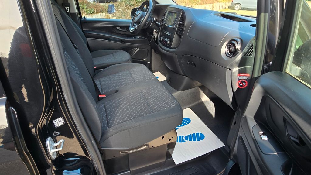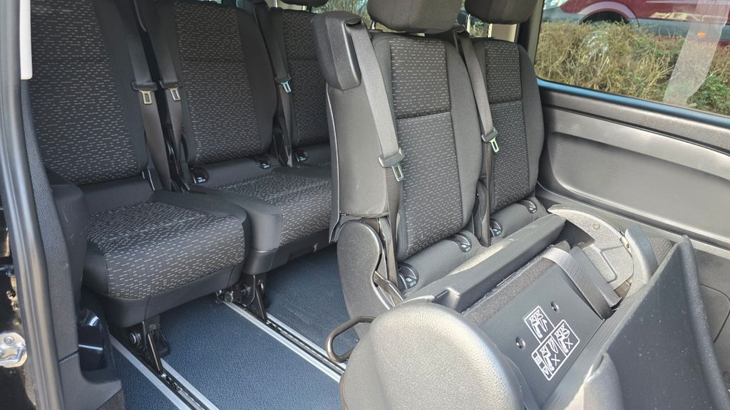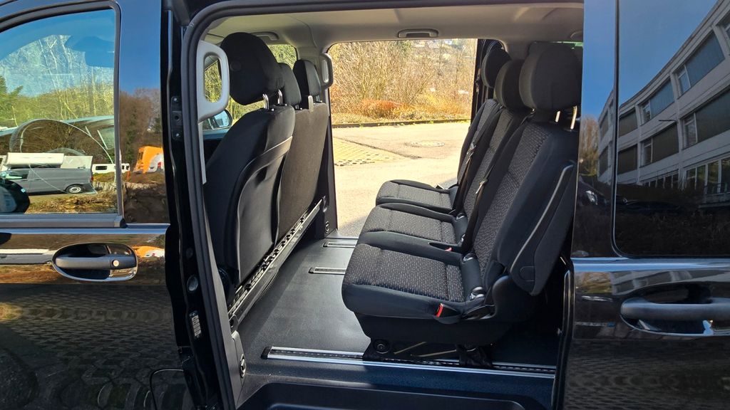 3. Bremsleuchte, Adaptives Bremslicht, Airbag Beifahrerseite, Airbag Fahrerseite, Anfahrhilfe (Berganfahr-Assistent), Anzeige für Waschwasserstand, Außenspiegel asphärisch, beide, Außenspiegel elektr. verstell- und heizbar, beide, Außentemperaturanzeige, Befestigungsschienen für Dachträger, BlueEfficiency-Paket, Bodenbelag: Fahrgastraum TPO, Bremsassistent, Bremssystem mit ABS+ASR, Dachbedieneinheit mit Lesespot Fahrer-/Beifahrerseite, Dachverkleidung, Design- und Ausstattungslinie PRO, Einschaltautomatik für Fahrlicht, Einstiegsgriff hinten, Fahrassistenz-System: Anfahr-Assistent (Berganfahr-Assistent), Fahrassistenz-System: Attention-Assist (Müdigkeitserkennungs-Sensor), Fahrassistenz-System: Pannenmanagement, Fahrassistenz-System: Seitenwind-Assistent, Fenster für hintere Türen / Heckklappe mit Wisch-/Waschanlage, Fenster im Lade-/FG-Raum: - feststehend, hinten, Fenster im Lade-/FG-Raum: - feststehend, vorn links, Fenster im Lade-/FG-Raum: - feststehend, vorn rechts, Frontscheibe mit Scheibenantenne, Geschwindigkeits-Begrenzeranlage 210 km/h, Getriebe Automatik GTronic - (9-Stufen), Getränkehalter vorn, Gurtstraffer, Haltegriffe A-Säulen, Haltegriffe im Fond, Handschuhfach abschließbar, Harnstofftank (AdBlue): 24 Ltr., Heckklappe mit Verglasung, Heckscheibe heizbar, Heckscheibenwischer, Innenverkleidung gehobene Ausführung, Karosserie/Aufbau: Kombi Standard, Karosserie/Aufbau: lang, Kindersicherung, Kombiinstrument mit Pixel-Matrix-Display, Kommunikationsmodul (LTE) für digitale Dienste, Kopf-Airbag-System (Windowbag), Kopf-Schulter-Airbag (Thoraxbag) Fahrer-/Beifahrerseite, Kraftstofftank: Haupttank 57 Ltr., Lenkrad (Lenksäule mech. verstellbar), Lenkrad mit Multifunktion inkl. Reiserechner, Mercedes-Benz Notrufsystem, Modellpflege, Motor 2,0 Ltr. - 120 kW CDI KAT, Nebelschlussleuchte, PKW-Zulassung, Pro, PTC Heater, Radstand 3200 mm, Reifen 205/65 R16C 103/101 T, Reifendruck-Kontrollsystem, Rückspiegel innen, Schadstoffarm nach Abgasnorm Euro 6d, Scheibenwischer mit Regensensor, Schiebetür Lade-/Fahrgastraum rechts mit Verglasung, SCR-System (AdBlue-Technologie), Sicherheitsgurt-System mit Warnanlage (Fahrer-/Beifahrerseite), Sitzbezug / Polsterung: Stoff Caluma, Sitze im Fahrerhaus: Beifahrersitz verstellbar, Umfeldleuchte in Heckklappe, Vlies-Batterie 92 Ah, Vorbereitung für DAB Radioempfang, Warmluftkanal zum Lade-/Fahrgastraum, Wartungsintervall-Anzeige Assyst, Wärmeschutzverglasung