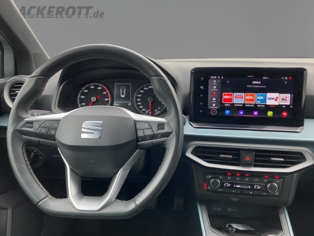 - Weiteres: Antriebs-Schlupfregelung (ASR), BORDCOMPUTER, Geschwindigkeits-Regelanlage (Tempomat), Scheibenwischer mit Regensensor, Scheinwerfer LED, Lenkrad mit Multifunktion, Reifendruck-Kontrollsystem, Dachreling, ISOFIX-Aufnahmen für Kindersitz, Rücksitzlehne geteilt/klappbar (1/3-2/3), Mittelarmlehne vorn, Außenspiegel elektr. verstell-, heiz- und anklappbar, beide, Heckleuchten LED, Airbag Beifahrerseite abschaltbar, Motor 1,0 Ltr. - 81 kW TSI, Schließ-/Startsystem Kessy, Notrufsystem, Getriebe 6-Gang, Mobile Online Dienste Seat Connect, Schadstoffarm nach Abgasnorm Euro 6d, LM-Felgen, Kombiinstrument digital (8 Zoll), Innenraumfilter: Pollenfilter, Elektron. Querdifferentialsperre (XDS), SEAT Media-System Touch Colour, Sitze vorn höhenverstellbar, Scheinwerfer Voll-LED, Audio-Navigationssystem mit Touchscreen Farbbildschirm, Seitenscheiben hinten und Heckscheibe abgedunkelt, Innenausstattung: Luftdüsen grau, Anti-Blockier-System (ABS), Tagfahrlicht LED, Lenksäule (Lenkrad) höhenverstellbar, Fensterheber elektrisch, Kopf-Airbag-System, Servolenkung, Reifenkontroll-Anzeige, Seitenairbag, Wegfahrsperre (elektronisch), Lenksäule (Lenkrad) verstellbar, Ambiente-Beleuchtung LED, Airbag Fahrer-/Beifahrerseite, Gepäckraumabdeckung / Rollo, Full Link (MirrorLink, Apple CarPlay und Android Auto), Metallic-Lackierung, Ablage-Paket, Allwetter-/ Ganzjahresreifen, Antriebsart: Frontantrieb, Audiosystem mit Touchscreen-Farbdisplay, Außentemperaturanzeige, Ausstattungs-Paket: Pro, Berg-Anfahr-Assistent (Hill-Holder), Bluetooth-Schnittstelle mit Freisprecheinrichtung, Bremsassistent, Chromleisten an Seitenfenstern, Climatronic 2-Zonen, Dachhimmel schwarz, Einschaltautomatik für Fahrlicht, Elektr. Bremskraftverteilung, Elektron. Differentialsperre (EDS), Elektron. Stabilitätskontrolle (ESC), Elektron. Stabilitäts-Programm, Geschwindigkeits-Begrenzeranlage, Heckscheibe heizbar, Heckscheibenwischer, Induktionsladeschale für Smartphone, Innenspiegel mit Abblendautomatik, Laderaumboden variabel, Lederlenkrad, Lichtassistent (Coming Home, Leaving Home), Müdigkeitserkennung, Multikollisionsbremse (Multi Collision Brake), Parklenkassistent mit Einparkhilfe vorn und hinten inkl. Rückfahrkamera, Radioempfang digital (DAB+), Radstand 2566 mm, Sitzheizung vorn, Sitzhöhenverstellung Fahrersitz, Sprachsteuerung, Spurhalteassistent, Start/Stop-Anlage, Türgriffe lackiert, Umfeldbeobachtungssystem (Front Assist) mit City-Notbremsfunktion, USB-Schnittstelle vorn (2-fach, Typ C), USB-Schnittstelle vorn (2-fach, Typ C), Wärmeschutzverglasung, Winter-Paket, ZV mit Fernbedienung
