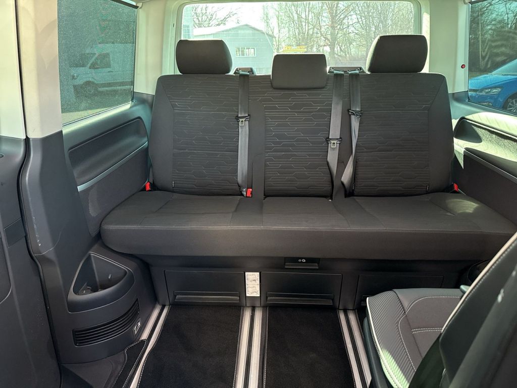 Heckklappe mit Fensterausschnitt und Zuziehhilfe, Automatische Distanzregelung ACC bis 210 km/h und Umfeldbeobachtungssystem Front Assist mit City-Notbremsfunktion, Geschwindigkeits-Begrenzeranlage, Fahrassistenz-System: City-Notbremsfunktion, Elektronisches Stabilisierungsprogramm ABS ASR(mit Deaktivierungstaster) EDS Berganfahrassistent und Bremsassistent, Verdampfer zusätzlich, Anhänger-Stabilisierungs-Programm, Sonnenschutzfolie an den Fenstern Tiefschwarze Tönung im Fahrgastraum, Indiumgrau Metallic/Dach Schwarz, Schiebetür rechts im Lade-/Fahrgastraum mit elektrischer Zuziehhilfe, Ausstattungs-Paket Licht + Sicht, Normaldach (mit Befestigungspunkten für Dachträgersysteme: 8 beim kurzen Radstand 10 beim langen Radstand), Außenspiegelgehäuse und Türgriffe in Wagenfarbe (bei Edition Modellen Außenspiegelgehäuse in Deep Black), Stoßfänger in Wagenfarbe bei Serienlackierungen bzw. gemäß Farbbeschreibung bei Sonderlackierungen, Seitenfenster vorne und hinten im Lade-/Fahrgastraum links, Seitenfenster vorn und hinten im Lade-/Fahrgastraum rechts, Mobiltelefon-Schnittstelle, Vorbereitet für We Connect und We Connect Plus, Armaturentafel Komfort (Unterteil in Titanschwarz) mit Chromapplikationen und schwarz lackierten Blenden, Dekor-Einlagen Bright Brushed Grey, Airbags für Fahrer und Beifahrer mit Beifahrer-Airbag-Deaktivierung, Velour-Vlies-Bodenbelag im Fahrerhaus, Bodenbelag im Fahrgastraum aus trittverstärktem Teppichboden, Haltegriff für Einstieg an der A-Säule auf der Fahrer- und Beifahrerseite, Handschuhfach abschließbar, Komforthimmel im Fahrerhaus und Umlufthimmel mit Dachausströmern im Fahrgastraum, Seitenverkleidung Komfort im Fahrgastraum, Allergen-Filter, Zuheizer, Komfortsitz links mit Lendenwirbelstütze in der 1.Sitzreihe (nicht drehbar), Komfortsitz rechts mit Lendenwirbelstütze in der 1.Sitzreihe (nicht drehbar), Höheneinstellung für linken und rechten Einzelsitz im Fahrerhaus, Sitze im Fahrerhaus: Fahrersitz höhenverstellbar, Sitze im Fahrerhaus: Beifahrersitz höhenverstellbar, Lendenwirbelstützen für linken und rechten Einzelsitz in der 1.Sitzreihe (beide manuell einstellbar), Sitze im Fahrerhaus: Lendenwirbelstütze Fahrersitz, Armlehnen für beide Sitze im Fahrerhaus, Sitze im Fahrerhaus: Armlehnen Fahrersitz, Sitze im Fahrerhaus: Armlehnen Beifahrersitz, 2 Drehsitze mit Armlehnen im Schienensystem verschiebbar in der 2. Sitzreihe, 3er-Sitzbank mit Liegefunktion und Staufach verschiebbar in der 3.Sitzreihe, Heckklappe mit Verglasung, Innenleuchten im Fahrerhaus: Leseleuchten vorn (2), Trittstufenbeleuchtung