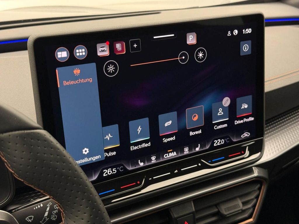 - Navigationssystem mit 12,9" Display 3D Navigation Sprachsteuerung Vorbereitet für die Aktivierung des Dienstepakets CUPRA CONNECT Plus mit einer kostenlosen Vertragslaufzeit von 10 Jahren