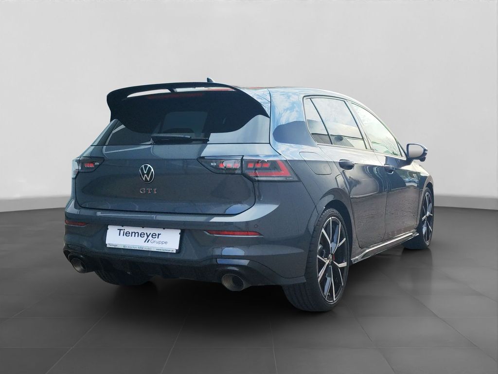 Ausstattungsvariante; GTI Clubsport; Garantie; Anschlussgarantie 3 Jahre max. 100.000 km; Getriebe / Antrieb; Automatik; Frontantrieb; Pakete; Assistenz Paket; Black Style Paket; Business Premium Paket; GTI Performance Paket; Airbags; Center-Airbag; Fahrer-/Beifahrerairbag; Kopfairbag vorn und hinten; Seitenairbag; Sicherheit; IQ. Light - LED-Matrix-Scheinwerfer; Abbiegelicht; Adaptives Kurvenlicht; Ausparkassistent - Rear Traffic Alert; LED Tagfahrlicht mit Leaving und Coming Home Funktion; Schlechtwetterlicht; Spurhalteassistent Lane Assist; Spurwechselassistent Side Assist; Abbiegebremsfunktion; Ablenkungserkennung; Ausstiegswarnung; Ausweichunterstützung; Auto Hold Funktion; Begrüssungslicht; Beifahrerairbag Deaktivierung; Berganfahrassistent; Dynamische Fernlichtregulierung Dynamic Light Assist; dynamisches Blinklicht; Einparkhilfe vorn und hinten; Elektrisches Stabilitätsprogramm ESP; Emergency Assist; Fahrlichtautomatik; Geschwindigkeitsbegrenzer mit vorausschauender Regelung; i-Size Kindersitzbefestigung vorn und hinten; ISOFIX Kindersitzbefestigung vorn und hinten; Lichtsensor; Müdigkeitserkennung; Notruf Service; Proaktives Insassenschutzsystem; Progressivlenkung; Regensensor; Reifendruckkontrolle; Rückfahrkamera Rear View; Umfeldbeobachtungssystem Front Assist; Verabschiedungslicht; Verkehrszeichenerkennung; Wegfahrsperre; Vorbereitung Alcohol Interlock; Audio & Kommunikation; Infotainment-System mit Touch-Farbdisplay; Navigationssystem; Harman Kardon Soundsystem; Telefonschnittstelle mit induktiver Ladefunktion; 2 USB-C-Ladebuchsen an der Mittelkonsole hinten; 2 USB-C-Schnittstellen vorn; Android Auto; App-Connect Wireless; Apple CarPlay; Digitaler Radioempfang DAB+; Online-Connectivity-Unit; Sprachassistent IDA und elektronische Sprachverstärkung; VW Connect Plus Vorbereitung; Komfort; Fahrer-/Beifahrersitz höhenverstellbar; Head-Up Display; Lendenwirbelstütze Fahrer-/Beifahrersitz; Sitzheizung; Air Care Climatronic 3-Zonen; Bedienungselemente in der 2.Sitzreihe für Climatronic; Automatisch abblendender Innenspiegel; Automatische Distanzregelung ACC; Fensterheber elektrisch; Keyless Start; Mittelarmlehne hinten; Mittelarmlehne vorn verstellbar; Servotronic; Verglasung hinten abgedunkelt; Zentralverriegelung mit Fernbedienung; Ablagefach in der Mittelkonsole vorn beleuchtet; Ablagefach vorn; Interieur; Sitzbezüge in Alcantara / Stoff; Digital Cockpit Pro; Top Sportsitze; Ambientebeleuchtung; LED Fußraumbeleuchtung Lichtfarbe wählbar; LED Leseleuchten vorn und hinten; Lenkradheizung; Make-up Spiegel beleuchtet; Multifunktionssportlederlenkrad mit Schaltwippen; Pedale in Edelstahl gebürstet; Rücksitzlehne geteilt/klappbar; Travel Assist; Exterieur; Adaptive Fahrwerksregelung DCC mit Fahrprofilauswahl; Akrapovic Performance Abgasanlage - Endschalldämpfer und Abgasdoppelendrohre in Titan; Sportfahrwerk; 3D LED Rückleuchten; Außenspiegel elektrisch verstell-/anklappbar beheizt mit Memory und Beifahrerspiegelabsenkung; Außenspiegelgehäuse in Schwarz; Leichtmetallfelgen 19 Zoll Estoril; Leiste zwischen den Scheinwerfern sowie Türgriffmulden beleuchtet; Rekuperation - Bremsenergierückgewinnung; Start-Stop System; Umfeldbeleuchtung mit Lichtprojektion; Vorderachs-Differenzialsperre; Leuchtweitenregulierung automatisch dynamisch; Sonstiges; 12 Volt Steckdose im Koffer-/Laderaum; 12 Volt Steckdose vorne; Pannenkit; Anhebung der Höchstgeschwindigkeit; Metallic-Lackierung;