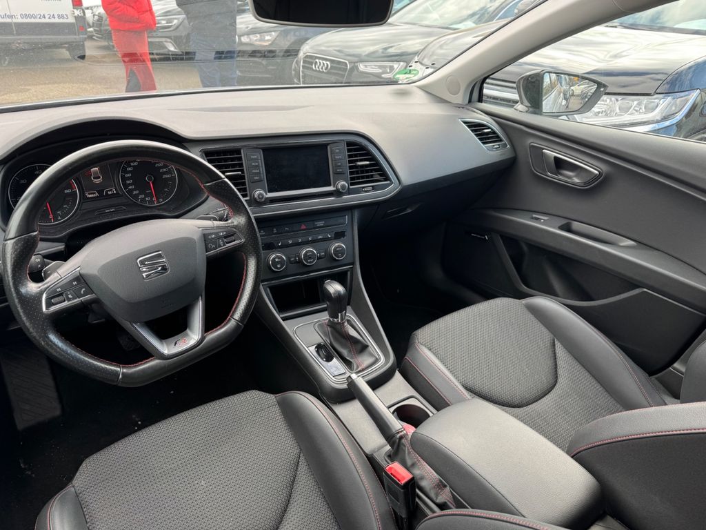 3. Bremsleuchte, Ablage-Paket, Ablagetasche an Vordersitzlehnen, Airbag Beifahrerseite abschaltbar, Airbag Fahrer-/Beifahrerseite, Ambiente-Beleuchtung LED, Antriebs-Schlupfregelung (ASR), Außenspiegel elektr. verstell-, heiz- und anklappbar, beide, Außenspiegel und Türgriffe außen in Wagenfarbe, Außentemperaturanzeige, Blinkleuchten LED in Außenspiegel integriert, Bordcomputer, Bremsassistent, Dachreling silber, Elektron. Differentialsperre (EDS), Fahrassistenz-System: Berganfahr-Assistent (Hill-Holder), Fahrassistenz-System: Berganfahr-Assistent und Elektron. Differentialsperre, Fahrassistenz-System: Fahrprofilauswahl (SEAT Drive Profile), Fensterheber elektrisch hinten, Gepäckraumabdeckung / Rollo, Handschuhfach beleuchtet, Heckleuchten LED, Innenausstattung: Chrom-Applikationen, Isofix-Aufnahmen für Kindersitz, Karosserie: 5-türig, Klimaanlage Climatronic 2-Zonen, Knieairbag Fahrerseite, Kofferraumbeleuchtung, Kopf-Airbag-System, Kopfstützen hinten (3-fach), Kopfstützen vorn verstellbar, Laderaumboden variabel und herausnehmbar, Lendenwirbelstütze Sitz vorn links, verstellbar, Lendenwirbelstütze Sitz vorn rechts, verstellbar, Lenkrad (Sport/Leder), LM-Felgen, Mittelarmlehne hinten, Motor 2,0 Ltr. - 110 kW TDI, Reifenkontroll-Anzeige, Rücksitzlehne geteilt/klappbar (1/3-2/3), Rücksitzlehnen umklappbar mit Fernentriegelung im Kofferraum, Schadstoffarm nach Abgasnorm Euro 6, Schalt-/Wählhebelgriff Leder, Seitenairbag, Seitenscheiben hinten und Heckscheibe abgedunkelt, Sitz vorn links höhenverstellbar, Sitz vorn rechts höhenverstellbar, Sonnenblende links mit Spiegel (beleuchtet), Sonnenblende rechts mit Spiegel (beleuchtet), Sport-Fahrwerk FR / Cupra, Sportsitze vorn, Sprachsteuerungs-System, Start/Stop-Anlage, Stau-/Ablagefach unter Sitze vorn, Steckdose (12V-Anschluß) im Koffer-/Laderaum, Steckdose (12V-Anschluß) vorn, Stoßfänger lackiert, Wärmeschutzverglasung