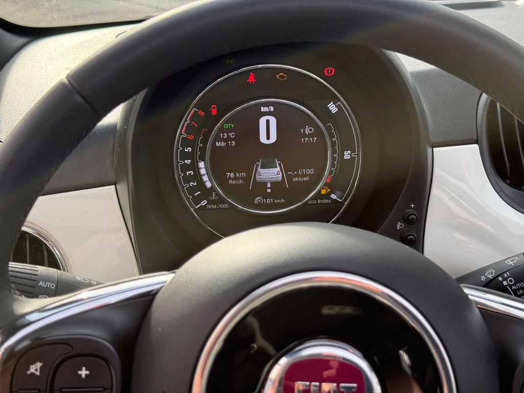 Airbag Fahrer-/Beifahrerseite, Auspuffblende verchromt, Autom. Begleitfunktion der Beleuchtung (Follow me home), Automatische Türverriegelung, Außenspiegel Wagenfarbe, Beifahrerairbag abschaltbar, Bordcomputer, Elektr. Bremskraftverteilung, Fahrassistenz-System: Bremsassistent, Faltdach elektrisch, Fensterzierleisten verchromt, Geschwindigkeits-Begrenzeranlage, Gurtstraffer vorn, Heckscheibe heizbar, Heckspoiler, Infotainment-System: UConnect mit MP3-Player (Touchscreen 7"), Isofix-Aufnahmen für Kindersitz an Rücksitz, Karosserie: 2-türig, Knieairbag Fahrerseite, Kopf-Airbag-System vorn, Kopf-Airbag-System vorn und hinten, Lenksäule (Lenkrad) höhenverstellbar, LM-Felgen, Modellpflege, Motor 1,2 Ltr. - 51 kW KAT, Positions-Memory für Beifahrersitz, Reifen-Reparaturkit, Reifendruck-Kontrollsystem, Rücksitz geteilt / klappbar, Schadstoffarm nach Abgasnorm Euro 5, Schadstoffarm nach Abgasnorm Euro 6d-TEMP, Seitenairbag vorn, Smartphone Schnittstelle (Apple CarPlay & Android Auto), Start/Stop-Anlage, Steckdose (12V-Anschluß) im Armaturenbrett, Steckdose (12V-Anschluß) vorn, Stoßfänger Wagenfarbe, Tankdeckel abschließbar, Türgriffe außen verchromt, Wärmeschutzverglasung