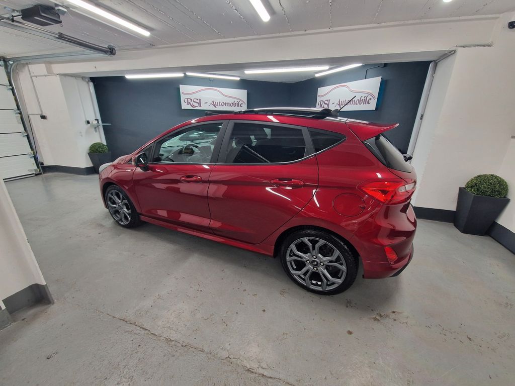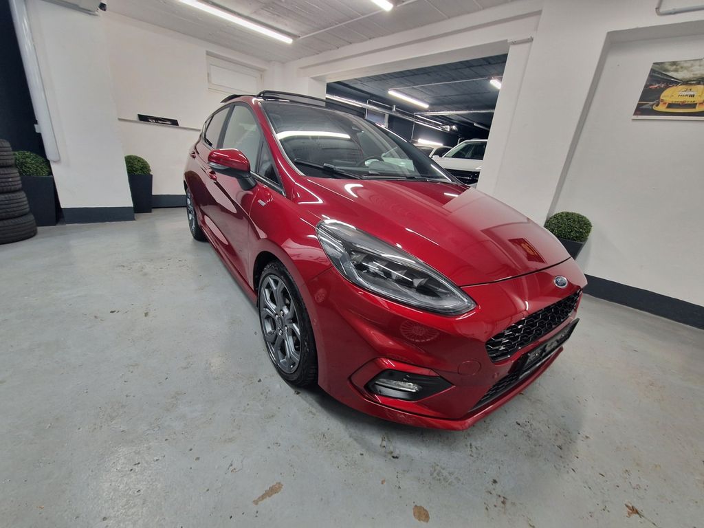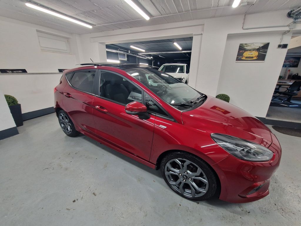Airbag Beifahrerseite abschaltbar, Ambiente-Beleuchtung vorn (LED), Audio-Navigationssystem Ford SD (mit Ford SYNC), Außenspiegel elektr. verstell- und heizbar, Außenspiegel Wagenfarbe, Blinkleuchte in Außenspiegel integriert, Body-Styling-Paket, Bord-/Verbrauchscomputer, Dachhimmel Stoff, dunkel, Einstiegschienen mit Modell-Schriftzug, Elektr. Bremskraftverteilung (EBD), Energierückgewinnung (Smart Regenerative Charging), Fahrassistenz-Paket, Fahrassistenz-System: Auffahrwarnsystem, Fahrassistenz-System: Berganfahr-Assistent (Hill-Holder), Fahrassistenz-System: Notbrems-Assistent, Fahrassistenz-System: Pre-Collision-System, Farbdisplay für Bordcomputer, Fensterheber elektrisch vorn + hinten mit Komfortschließung, Fußmatten Velours - vorn, Getriebe 6-Gang - Typ: 6MX65, Handbremshebelgriff Leder, Innenraumfilter: Staub- und Pollenfilter, Intelligent Protection System (IPS), Isofix-Aufnahmen für Kindersitz, Karosserie: 5-türig, Klimaautomatik, Komfort-Paket, Kopfstützen hinten mechan. verstellbar (3 Stück), Kühlergrill im Sport-Design, Lenksäule (Lenkrad) höhen-/längsverstellbar, Leseleuchte vorn, LM-Felgen, Motor 1,0 Ltr. - 103 kW EcoBoost KAT, My Key (2. Fahrzeugschlüssel programmierbar), Otto-Partikelfilter (OPF), Pedale Aluminium, Reifen-Reparaturkit, Reifendruck-Kontrollsystem, Rücksitz geteilt, Rücksitzlehne klappbar, Schadstoffarm nach Abgasnorm Euro 6, Schadstoffarm nach Abgasnorm Euro 6d-TEMP, Scheinwerfer mit Ausschaltverzögerung, Scheinwerfer-Assistent mit Tag-/Nachtsensor, Sitz vorn links höhenverstellbar, Sonnenblende links mit Spiegel, Sonnenblende rechts mit Spiegel, Sound-System Bang & Olufsen Play, Sport-Fahrwerk, Sportsitze vorn, Türgriffe außen Wagenfarbe, Verglasung getönt, Warnanlage für Sicherheitsgurte hinten, Regensensor.