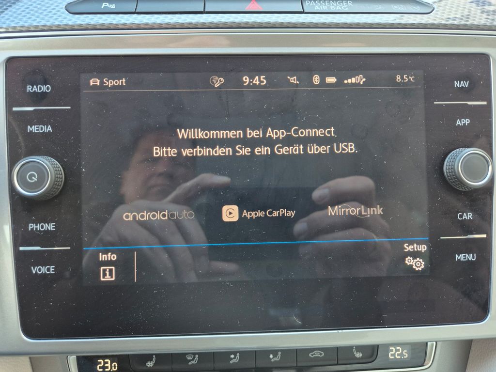 Sonderausstattung:Audiosystem Composition Media (Touchscreen, Radio/CD-Player, MP3, Bluetooth), Business-Paket Premium mit Navigation, Feuerlöscher, Innenausstattung: Leder Vienna (inkl. Sitzheizung vorn), Insassen-Schutzsystem proaktiv, Knieairbag Fahrerseite, Seitenairbag und Gurtstraffer hinten außen, Kofferraumdeckel / Heckklappe elektr. betätigt (öffnen + schliessen), LM-Felgen 8x19 (Albertville), Mobiltelefon Schnittstelle Comfort (inkl. Bluetooth-/Audio-Schnittstelle), Navigationsmodul Discover Media (für Audiosystem), Perleffekt-Lackierung, Reifendruck-Kontrollsystem, Sitz vorn links mit Massagefunktion, Top-Paket, Verglasung hinten abgedunkelt (65 %), Volkswagen Media Control und App-Connect / MirrorLink, Zusatzheizung Standheizung mit Fernbedienung