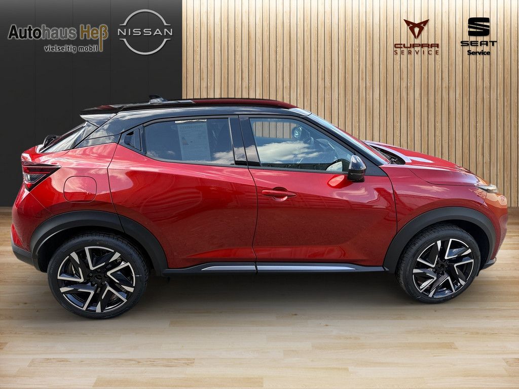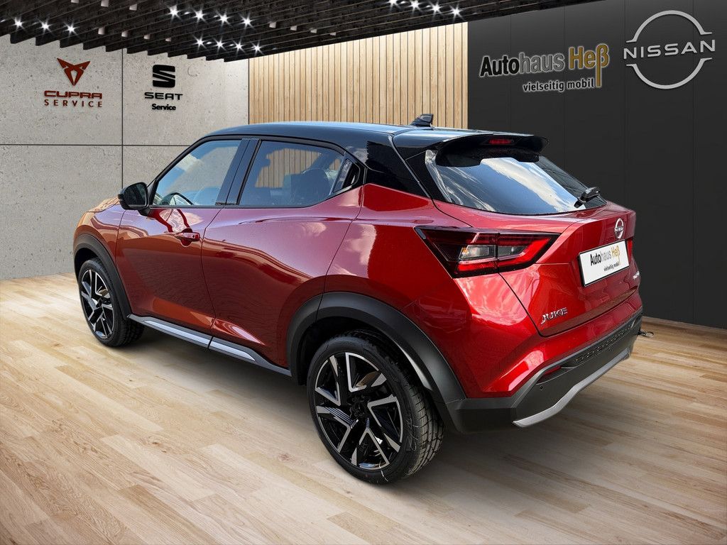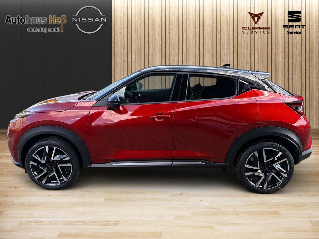 Anti-Blockier-System (ABS), Elektr. Bremskraftverteilung (EBD), Audiosystem: Radio, Radioempfang digital (DAB), AUX-IN-Anschluss (AUX-IN), Bluetooth-Schnittstelle, USB-Schnittstelle, Ausstattungs-Paket: Nissan Connect, Infotainment mit Touchscreen, Farbdisplay (8 Zoll), Außenspiegel elektr. verstellbar, Blinkleuchte in Außenspiegel integriert, Außenspiegel mech. von innen verstellbar, Außenspiegel elektr. anklappbar, Außenspiegel heizbar, Scheibenwischer mit Regensensor, Klimaautomatik, Innenraumfilter: Pollenfilter, Sitzheizung vorn, Dachantenne im Haifischflossen-Design in Dachfarbe, Dachantenne im Haifischflossen-Design, Fahrassistenz-System: Autonomer Notbrems-Assistent, Fahrassistenz-System: Fußgängererkennung, Lenkrad (Leder) mit Multifunktion, Audio-/Bordcomputerbedienung am Lenkrad, Winter-Paket, Sitzheizung vorn, Sitz vorn rechts höhenverstellbar, Lenkrad heizbar, 6 Lautsprecher, Abdeckkappen Außenspiegel Schwarz, Ablagetasche an Vordersitzlehnen, Airbag Beifahrerseite abschaltbar, Airbag Fahrer-/Beifahrerseite und Seitenairbag vorn, Ambiente-Beleuchtung, Ambiente-Beleuchtung Türverkleidung vorn, Antriebsart: Frontantrieb, Außenspiegel Dachfarbe, Außentemperaturanzeige, Bremsassistent (Nissan Brake-Assist), Dach in Kontrastfarbe, Dachhimmel schwarz, Dachspoiler, Einparkhilfe hinten, Einparkhilfe vorn und hinten, Elektron. Stabilitäts-Programm (ESP), Fahrassistenz-System: Aktive Fahrkomfortregelung (Fahrwerksdämpfung), Fahrassistenz-System: aktiver Spurhalteassistent, mit korrigierendem Bremseingriff, Fahrassistenz-System: Berganfahr-Assistent, Fahrassistenz-System: Fernlichtassistent, Fahrassistenz-System: Kurvenbremskontrolle (Aktive Spurkontrolle), Fahrassistenz-System: Sicherheitssystem ERA GLONASS mit automatischem Notruf, Fahrassistenz-System: Verkehrszeichenerkennung, Fahrer-Informations-System (FIS) mit Farbdisplay, Fahrmodusschalter, Fensterheber elektrisch vorn + hinten, Gepäckraumabdeckung / Rollo, Geschwindigkeits-Begrenzeranlage, Geschwindigkeits-Regelanlage (Tempomat), Getriebe 7-Gang - Doppelkupplungsgetriebe DCT, Innenspiegel mit Abblendautomatik, Instrumentenanzeige TFT-Farbdisplay (12,3 Zoll), Isofix-Aufnahmen für Kindersitz, Karosserie: 5-türig, Kopf-Airbag-System, Kopfstützen vorn und hinten verstellbar, Lenkrad mit Schaltwippen/-tasten, Lenksäule (Lenkrad) höhenverstellbar, Leseleuchte vorn, LM-Felgen, Mittelarmlehne vorn, Modellpflege, Motor 1,0 Ltr. - 84 kW 12V KAT, Nebelscheinwerfer LED, Otto-Partikelfilter (OPF), Parkbremse elektrisch, Radioempfang digital (DAB+), Radstand 2636 mm, Reifen-Reparaturset, Reifendruck-Kontrollsystem, Rückfahrkamera, Rücksitz geteilt/klappbar, Schadstoffarm nach Abgasnorm Euro 6e, Schalt-/Wählhebelgriff Leder, Scheinwerfer LED, Schließ-/Startsystem intelligent key, Sitz vorn links höhenverstellbar, Smartphone Schnittstelle (Apple CarPlay & Android Auto), Sonnenblenden mit Spiegel (beleuchtet), Sportsitze vorn (Monoform-Design), Sprachbediensystem Spracherkennung, Start-Stop-Knopf, Start/Stop-Anlage, Steckdose (12V-Anschluß), Touchscreen-Farbdisplay (12,3 Zoll), Türgriffe innen verchromt, Türverkleidung Kunstleder, Verglasung hinten abgedunkelt.