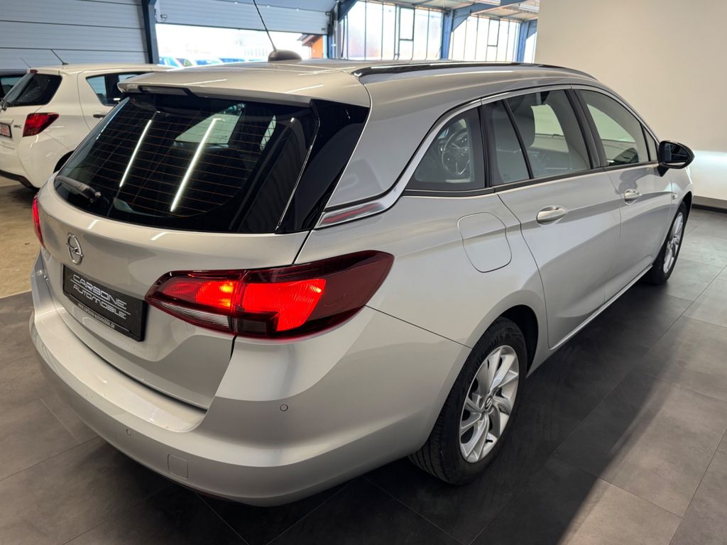 Opel Astra mit folgender Ausstattung:Airbag Fahrer-/Beifahrerseite, Audiosystem Multimedia, Außenspiegel elektr. verstell- und heizbar, elektr. anklappbar, Außenspiegel Wagenfarbe, Bluetooth Audio-Streaming, Bordcomputer, Bremsassistent, Dach, Design-Ausführung (Chrom), Dachreling silber, Drehzahlmesser, Ecoflex, Elektron. Stabilitäts-Programm Plus (ESP), Ergonomiesitz vorn links, Fahrassistenz-System: Berganfahr-Assistent (HSA, Hill Start Assist), Fensterheber elektrisch vorn + hinten, Feststellbremse elektrisch, Frontkamera, Isofix-Aufnahmen für Kindersitz an Rücksitz, Karosserie: 5-türig, Klimaautomatik 2-Zonen, Kopf-Airbag-System, Laderaumabdeckung, Lenkrad mit Multifunktion, Lenksäule (Lenkrad) verstellbar, Licht-Paket, LM-Felgen, Modellpflege, Motor 1,5 Ltr. - 90 kW CDTI DPF KAT, MP3-Schnittstelle für Mobiltelefon/Handy, Parkpilotsystem hinten, Reifen-Reparaturkit, Reifendruck-Kontrollsystem, Rückfahrkamera, Schadstoffarm nach Abgasnorm Euro 6d, Scheinwerfer LED, Seitenairbag vorn, Sicht-Paket, Start/Stop-Anlage, Steckdose (12V-Anschluß) in Mittelkonsole, Türgriffe außen Wagenfarbe