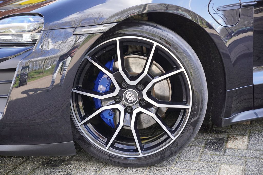 The most beautiful Porsche Taycan Sport Turismo in the Netherlands, black everywhere with blue contrast applied to the brake calipers, stitching in the leather! Fantastically neat and beautiful car!