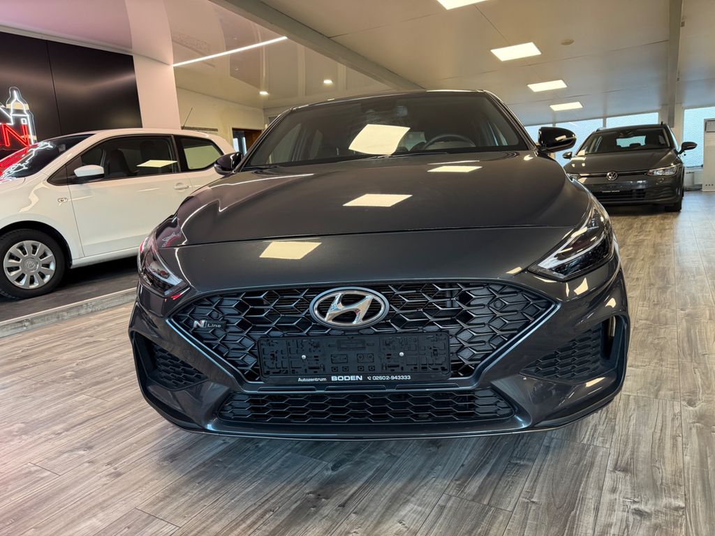 Dieser gepflegte Hyundai i30 Sportcoupé aus dem Jahr 2021 bietet ein überzeugendes Gesamtpaket für sportlich orientierte Fahrer. Der 159 PS starke Benziner mit 1.482 ccm Hubraum und Frontantrieb überzeugt durch seine Kombination aus Leistung und Alltagstauglichkeit. Das Automatikgetriebe sorgt für komfortables Fahren, während das Sportpaket mit Sportsitzen dem Fahrzeug eine dynamische Note verleiht. Die graue Metallic-Lackierung harmoniert perfekt mit dem schwarzen Stoffinterieur.Die umfangreiche Ausstattung umfasst ein modernes Navigationssystem mit Touchscreen, Apple CarPlay und Android Auto sowie ein hochwertiges Soundsystem. Zahlreiche Fahrassistenzsysteme wie Spurhalteassistent, Totwinkelwarner und Kollisionsvermeidung erhöhen die Sicherheit. Die LED-Scheinwerfer mit Kurvenlichtfunktion und Fernlichtassistent sorgen für optimale Sicht bei allen Lichtverhältnissen.