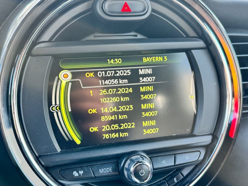 Audio-Navigationssystem, Audiosystem MINI Visual Boost (inkl. LC-Display), Ausstattungs-Paket: Chili, Außenspiegel schwarz, DAB-Tuner (Radioempfang digital), Dekor-/Zierstreifen auf Motorhaube, HiFi-Lautsprechersystem Harman-Kardon, Innenspiegel mit Abblendautomatik, LM-Felgen 7x17 (Cosmos Spoke, Schwarz), Reifensystem Run-Flat (mit Notlaufeigenschaften), Sicht-Paket, Sitzbezug / Polsterung: Leder Cross Punch, Sitzheizung vorn, Uni-Lackierung, Windschutz (Cabrio)