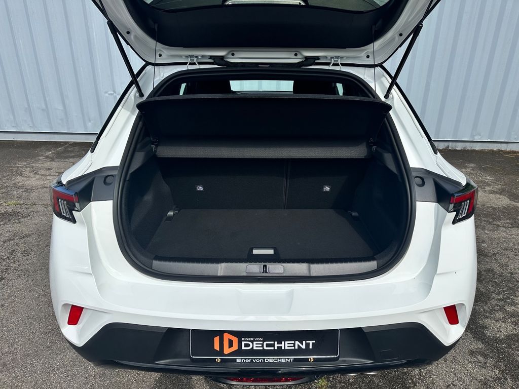 Audiosystem Multimedia, Außenspiegel elektr. verstell- und heizbar, elektr. anklappbar, Black-Paket, Bluetooth Audio-Streaming, DAB-Tuner (Radioempfang digital), Dach Diamant-Schwarz, Dachhimmel schwarz, Dachspoiler, Elektron. Stabilitäts-Programm Plus (ESP), Fahrassistenz-System: Fernlichtassistent, Fahrassistenz-System: Müdigkeitserkennungs-Sensor, Fahrassistenz-System: Verkehrszeichenerkennung, Fahrzeugschlüssel (2) beide klappbar, Feststellbremse elektrisch, Freisprecheinrichtung Bluetooth, Heckleuchten LED, Karosserie: 5-türig, Klimaautomatik, Kopf-Airbag-System, Lenkrad heizbar, LM-Felgen, Motor 1,2 Ltr. - 100 kW, MP3-Schnittstelle für Mobiltelefon/Handy, Nebelscheinwerfer LED, Opel Connect, Otto-Partikelfilter (OPF), Parkpilotsystem hinten, Radstand 2557 mm, Reifen-Reparaturkit, Schadstoffarm nach Abgasnorm Euro 6e, Scheinwerfer LED, Seitenairbag vorn, Sicht-Paket, Sitzbezug / Polsterung: Stoff / Ledernachbildung, Start/Stop-Anlage, Wärmeschutzverglasung, Wärmeschutzverglasung hinten abgedunkelt (Solar-Protect)