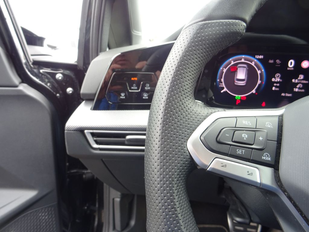 Airbag Fahrer-/Beifahrerseite, Beifahrerairbag abschaltbar, Ambiente-Beleuchtung (30 Farben), App-Connect Wireless (Apple CarPlay, Android Auto), Audiosystem: Vorbereitung für spätere Freischaltung Navigationsfunktion, Automatische Fahrlichtschaltung mit Leaving Home / Coming-Home-Lichtfunktion, Tagfahrlicht LED, Außenspiegel elektr. verstell-, heiz- und anklappbar mit Spiegelabsenkung rechts, Memory, Außenspiegel mit Umfeldleuchte und Projektionsfunktion, Außenspiegel und Türgriffe außen in Wagenfarbe, Bordwerkzeug, Chromeinfassung Fensterheberschalter / Spiegelverstellung / Ausströmer, Dachreling schwarz, Diebstahlsicherung für Räder (Felgenschlösser), Digital Cockpit PRO (Instrumentenanzeige digital), Einparkhilfe vorn und hinten, Elektron. Differentialsperre (XDS), Elektron. Stabilitäts-Programm (ESP) mit Bremskraftverstärker elektro-mechanisch, Fahrassistenz-System: Abbiegebremsfunktion und Ausweichunterstützung, Fahrassistenz-System: Ablenkungs- und Müdigkeitserkennung, Fahrassistenz-System: Berganfahr-Assistent, Fahrassistenz-System: Fahrprofilauswahl, Fahrassistenz-System: Spurhalteassistent (Lane Assist), Fahrassistenz-System: Spurwechselassistent (Side Assist) mit Auspark-Assistent und Ausstiegswarnung, Fahrassistenz-System: Umfeldbeobachtungssystem (Front assist) mit City-Notbremsfunktion, Fahrassistenz-System: Verkehrszeichenerkennung, Frontscheibe Verbundglas, wärme- und geräuschdämmend, Fußgänger-Schutzmaßnahmen erweitert, Fußmatten Textil, Fußraumbeleuchtung vorn LED (Farbe einstellbar), Geschwindigkeitsbegrenzer mit vorausschauender Geschw.-Regelung, Heckleuchten LED, Infotainment-System mit Touchscreen-Farbdisplay 12,9 Zoll, Innenausstattung: Dekoreinlagen Mesh, Isofix-Aufnahmen für Kindersitz an Beifahrersitz und Rücksitze außen (inkl. i-Size-Kindersitze), Karosserie: 5-türig, Keyless-Start ohne Safesicherung, Klimaanlage Climatronic, Kopfstützen hinten (3-fach), Lautsprecher (6+1), Lendenwirbelstützen vorn, Leseleuchten vorn und hinten LED, Leuchtweitenregelung automatisch, Mild-Hybrid 110 kW (Motor 1,5 Ltr. - 110 kW eTSI), Mild-Hybrid-Technologie, Mittelarmlehne vorn höhen-/längsverstellbar, Mobiltelefon Schnittstelle mit kabelloser Ladefunktion, Modellpflege, Multimedia-Schnittstelle 2 x USB (Typ C) vorn und 2 x USB-Ladeanschluß (Typ C) Mittelkonsole hinten (45 W), Nichtraucher-Paket, Notrufsystem, Otto-Partikelfilter (OPF), Parkbremse elektrisch mit Auto-Hold-Funktion, Pedale Edelstahl, Progressivlenkung, Radioempfang digital (DAB+), Reifen-Reparaturkit (Tire Mobility Set), Reifenkontroll-Anzeige, Rückfahrkamera (Rear View), Rücksitzlehne geteilt mit Mittelarmlehne, Schadstoffarm nach Abgasnorm Euro 6e, Scheinwerfer und Tagfahrlicht LED, Seitenairbag vorn mit Center-Airbag, Kopf-Airbag-Einheit vorn und hinten, Sicherheitsgurte hinten außen mit Gurtstraffer, Sitzbezug / Polsterung: Stoff R-Line / Mikrovlies ArtVelours, Sitze vorn höhenverstellbar, Sitze: Top-Sportsitze vorn, Sonnenblenden mit Spiegel (beleuchtet), Sport-Fahrwerk, Sprachverstärkung elektronisch (Kommunikation innen), Start/Stop-Anlage mit Rekuperation, Steckdose 12V im Koffer-/Laderaum, Stoßfänger R-Line, Türgriffschalen außen beleuchtet, Verbandkasten, Warndreieck und Warnweste(n), Vorbereitung für Alkohol-Wegfahrsperre (Alcolock), Vorbereitung für spätere Freischaltung - Fernlichtassistent Light Assist, Warnanlage für Sicherheitsgurte vorn und hinten