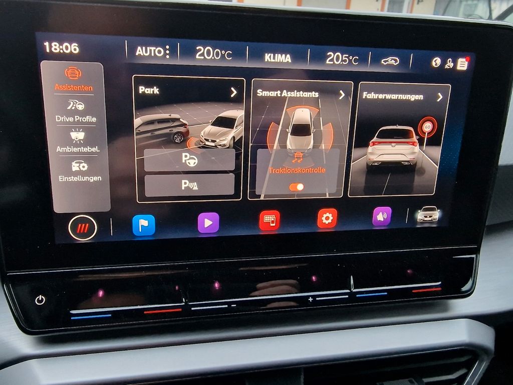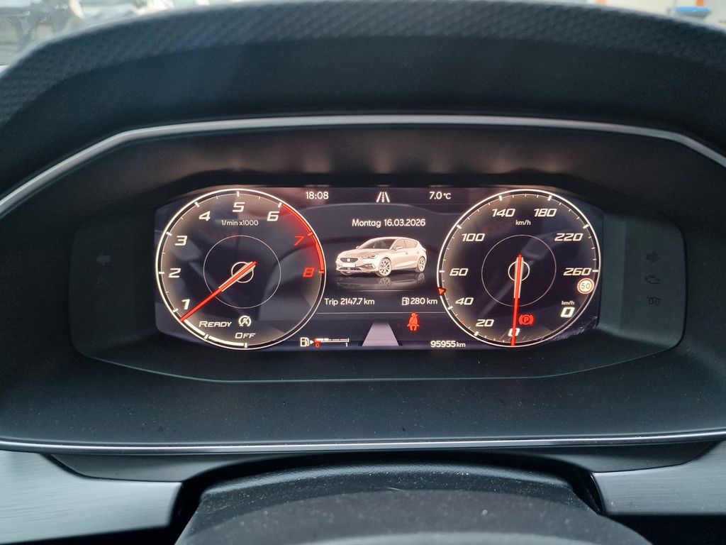 6 Lautsprecher, Ablagetasche an Vordersitzlehnen, Airbag Beifahrerseite abschaltbar, Airbag Fahrer-/Beifahrerseite, Antriebs-Schlupfregelung (ASR), Außenspiegel elektr. verstell-, heiz- und anklappbar mit Spiegelabsenkung, Außenspiegel grau, Blinkleuchten LED in Außenspiegel integriert, Bluetooth-Schnittstelle mit Freisprecheinrichtung integriert, Bordcomputer, Doppeltonhorn, Einstiegsleisten beleuchtet, Elektron. Querdifferentialsperre (XDS), Fahrassistenz-System: Fahrprofilauswahl (SEAT Drive Profile), Fahrassistenz-System: Müdigkeitserkennung, Fahrassistenz-System: Spurhalteassistent, Fahrassistenz-System: Umfeldbeobachtungssystem (Front assist) mit City-Notbremsfunktion, Fensterheber elektrisch vorn + hinten mit Komfortschaltung, Gepäckraumabdeckung / Rollo, Handschuhfach beleuchtet, Innenraumlicht-Paket LED, Isofix-Aufnahmen für Kindersitz, Karosserie: 5-türig, Klimaanlage Climatronic 3-Zonen, Kofferraumbeleuchtung, Kombiinstrument digital (virtual cockpit), Kopf-Airbag-System, Lendenwirbelstütze Sitz vorn links, verstellbar, Lendenwirbelstütze Sitz vorn rechts, verstellbar, Lenkrad (Sport/Leder) mit Multifunktion, LM-Felgen, Mobile Online Dienste Seat Connect, Motor 1,5 Ltr. - 110 kW 16V TSI ACT, Nebelscheinwerfer LED mit Abbiegelicht, Notrufsystem, Otto-Partikelfilter (OPF), Parkbremse elektrisch mit Auto-Hold-Funktion, Radioempfang digital (DAB+), Reifen-Reparaturset, Reifenkontroll-Anzeige, Rücksitzlehne geteilt/klappbar (1/3-2/3), Schadstoffarm nach Abgasnorm Euro 6d, Schalt-/Wählhebelgriff Leder, Seitenairbag, Seitenairbag vorn mitte (Central Airbag), Seitenscheiben hinten und Heckscheibe abgedunkelt, Sitz vorn links höhenverstellbar, Sitz vorn rechts höhenverstellbar, Sitzbezug / Polsterung: Stoff, Sport-Fahrwerk, Sport-Komfortsitze vorn, Start/Stop-Anlage, Steckdose (12V-Anschluß) vorn, Stoßfänger FR-Design, USB-Schnittstelle vorn (2-fach, Typ C), Verzurrösen Koffer-/Laderaum, Warnanlage für Sicherheitsgurt-System, Wärmeschutzverglasung