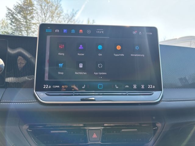Multifunktionslenkrad in Leder, beheizbar, mit Schaltwippen; Klimaanlage "Air Care Climatronic" mit Aktiv-Kombifilter, Bedienelementen hinten und 3-Zonen-Temperaturregelung; Bordcomputer; Digital Cockpit Pro, mehrfarbig, verschiedene Info-Profile wählbar; Textilfußmatten vorn und hinten; Dachhimmel in Ceramique; Make-up-Spiegel beleuchtet in den Sonnenblenden; Elektrische Luftzusatzheizung