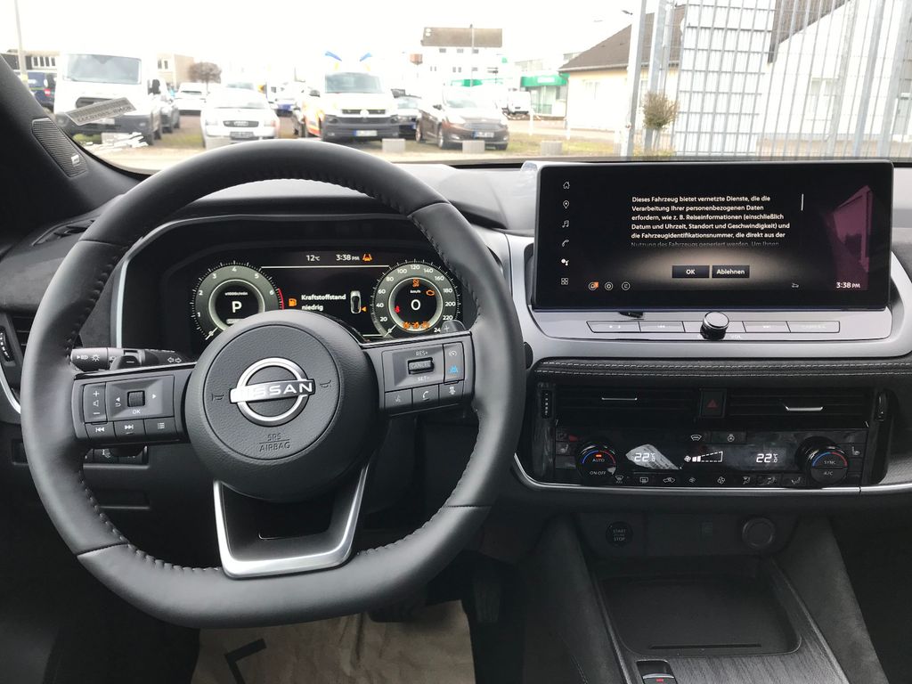 3. Bremsleuchte, Airbag Fahrer-/Beifahrerseite, Ambiente-Beleuchtung, Ambiente-Beleuchtung erweitert, Around View Monitor (360° Umgebungsansicht), Ausstattungs-Paket: Nissan Connect Navigationssystem mit Around View Monitor, Auto-Hold-Funktion, Automatische Fahrlichtschaltung, Außenspiegel elektr. anklappbar, Außenspiegel elektr. verstell- und heizbar, Blinkleuchten LED in Außenspiegel integriert, Business-Paket, Dachantenne im Haifischflossen-Design, Dachhimmel schwarz, Design-Paket, Elektr. Bremskraftverteilung (EBD), Fahrassistenz-System: Adaptiver Fernlichtassistent, Fahrassistenz-System: aktiver Spurhalteassistent, mit korrigierendem Bremseingriff, Fahrassistenz-System: Auffahrwarnsystem (Forward Collision Warning, FCW), Fahrassistenz-System: Autonomer Notbrems-Assistent, Fahrassistenz-System: Berganfahr-Assistent, Fahrassistenz-System: Moving Object Detection (MOD, Fußgängererkennung und bewegliche Objekterkennung), Fahrassistenz-System: Müdigkeitserkennungs-Sensor, Fahrassistenz-System: ProPilot Park, Fahrassistenz-System: Querverkehrs-Assistent Heck (Rear Cross Traffic Alert, RCTA), Fahrassistenz-System: Sicherheitssystem ERA GLONASS mit automatischem Notruf, Fahrassistenz-System: Totwinkel-Assistent, Fahrassistenz-System: Verkehrszeichenerkennung, Fahrmodusschalter, Fensterheber elektrisch vorn + hinten, Gepäck-/Laderaum-Unterteilung (Flexi-Board), Geschwindigkeits-Begrenzeranlage, Geschwindigkeits-Regelanlage (Tempomat) mit Abstandsregelung, Handschuhfach beleuchtet, Heckleuchten LED (Super rot), Innenraumfilter: Pollenfilter, Innenspiegel mit Abblendautomatik, Instrumentenanzeige TFT-Farbdisplay (12,3 Zoll), Isofix-Aufnahmen für Kindersitz, Karosserie: 5-türig, Klimaautomatik 2-Zonen, Kniepolster Mittelkonsole seitlich, Kofferraumbeleuchtung, Komfort-Paket, Komfort-Paket (1), Kopf-Airbag-System, Lastenverankerung / Verzurrösen, Lendenwirbelstütze Sitz vorn links, elektr. verstellbar, Lenksäule (Lenkrad) höhen-/längsverstellbar, Leseleuchten vorn und hinten, Mild-Hybrid 116 kW (Motor 1,3 Ltr. - 116 kW DIG-T MHEV), Mittelarmlehne hinten mit Getränkehalter, Navigationssystem, Nebelscheinwerfer LED, Nebelschlussleuchte LED, Notbrems-Warnblinkautomatik, Otto-Partikelfilter (OPF), Parkbremse elektrisch, Radstand 2666 mm, Reifendruck-Kontrollsystem, Rückfahrkamera, Rücksitz geteilt/klappbar, Schadstoffarm nach Abgasnorm Euro 6d, Schadstoffarm nach Abgasnorm Euro 6e, Schalt-/Wählhebelgriff Leder, Scheibenwischer mit Intervallschaltung, Scheinwerfer Voll-LED, Seitenairbag, Seitenairbag vorn mitte (Center-Airbag), Service-System: Amazon Alexa, Sitz vorn links höhenverstellbar, Sitz vorn rechts elektr. verstellbar (mit Memory), Sitz vorn rechts höhenverstellbar, Sitz vorn rechts mit Massagefunktion, Sitzbezug / Polsterung: Premium-Leder Nappa, Sonnenblenden mit Spiegel (beleuchtet), Sound-System BOSE Premium, Start/Stop-Anlage, Steckdose (12V-Anschluß) im Koffer-/Laderaum, Steckdose (12V-Anschluß) in Mittelkonsole, Stylingelement Stoßfänger vorn Chrom-Optik, Technologie-Paket Getriebe Automatik, Touchscreen-Farbdisplay (12,3 Zoll), USB-Anschluss im Fond, USB-Schnittstelle, Verglasung hinten abgedunkelt