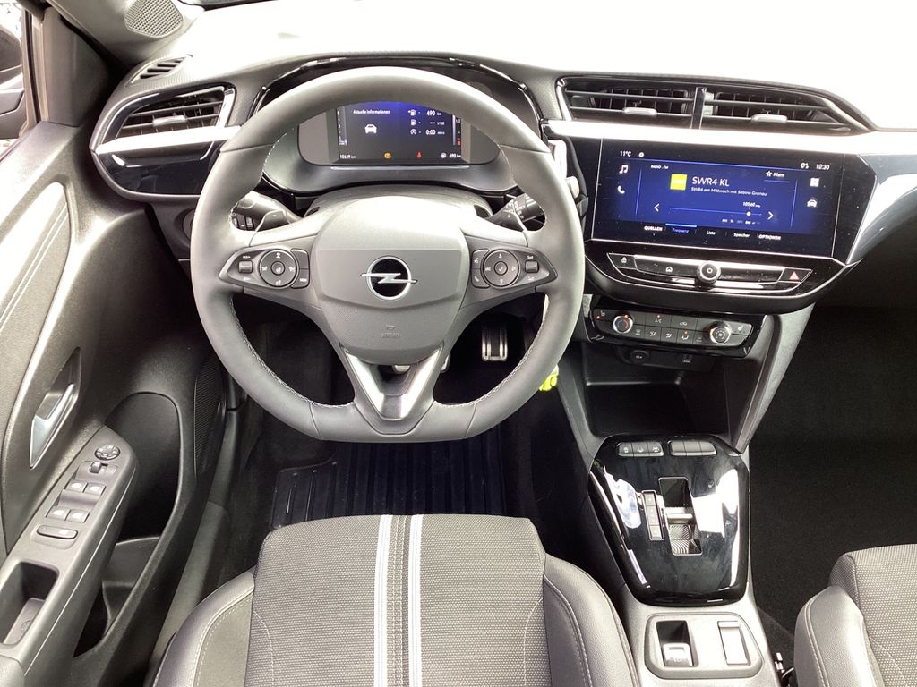 6 Lautsprecher, Airbag Fahrer-/Beifahrerseite, Audiosystem Multimedia, Außenspiegel elektr. verstell- und heizbar, elektr. anklappbar, B-Säulen schwarz Hochglanz (außen), Bordcomputer, Bremsassistent, Dach Kontrast-Lackierung, Dachhimmel schwarz, Einparkhilfe vorn und hinten mit Parksensoren seitlich, Elektron. Stabilitäts-Programm Plus (ESP), Fahrassistenz-System: Berganfahr-Assistent (HSA, Hill Start Assist), Fahrassistenz-System: Müdigkeitserkennungs-Sensor, Fahrassistenz-System: Spurhalteassistent, Fahrassistenz-System: Totwinkel-Assistent, Fahrassistenz-System: Verkehrszeichenerkennung, Farbdisplay (7 Zoll), Fensterheber elektrisch vorn + hinten, Fensterheber vorn elektr. mit Einklemmschutz, Feststellbremse elektrisch, Gepäckraumbeleuchtung (LED), Geschwindigkeits-Regelanlage (Tempomat) inkl. Geschwindigkeits-Begrenzeranlage, Getriebe Automatik - mit Start-/Stop (8-Stufen), Heckleuchten LED, Heckscheibenwischer, Innenausstattung: Dekorleisten Rot, Isofix-Aufnahmen für Kindersitz an Beifahrersitz, Isofix-Aufnahmen für Kindersitz an Rücksitz, Karosserie: 5-türig, Kopf-Airbag-System, Kraftstofftank 44 Ltr., Lenkrad (Leder, vegan) mit Multifunktion, Lenksäule (Lenkrad) verstellbar, Leseleuchten vorn (2), LM-Felgen, Mittelarmlehne vorn mit Ablagefach, Modellpflege, Motor 1,2 Ltr. - 74 kW, Nebelschlussleuchte, Opel Connect, Otto-Partikelfilter (OPF), Parkpilotsystem vorn und hinten, Pedale Aluminium, Reifen-Reparaturkit, Rückfahrkamera mit 130° Umgebungsansicht, Rücksitzbank geteilt/klappbar (60:40), Schadstoffarm nach Abgasnorm Euro 6e, Scheinwerfer LED, Seitenairbag vorn, Sicht-Paket, Sitzbezug / Polsterung: Stoff, Sportsitze vorn, Stoßfänger Sport-Design, Stoßfänger Wagenfarbe, Türgriffe außen Wagenfarbe, Türgriffe innen verchromt, Warnanlage für Sicherheitsgurt, Beifahrerseite, Warnanlage für Sicherheitsgurt, Fahrerseite, Warnanlage für Sicherheitsgurte hinten