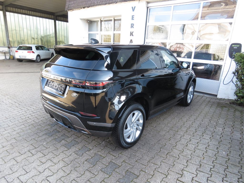 Airbag Fahrer-/Beifahrerseite, All-Terrain-Bereifung, Ambiente-Beleuchtung, Anhänger-Stabilisierungs-Programm, Anschluss-Paket 1, Audiosystem: Land Rover Sound-System (120 Watt, 6 Lautsprecher), Außenspiegel elektr. verstell- und heizbar, Außenspiegel elektr. verstell-, heiz- und anklappbar, mit Abblendautomatik und Umfeldleuchte, Außenspiegel mit Abblendautomatik, Außenspiegel mit Umfeldleuchte, Blinkleuchten mit Lauflicht, Bluetooth-Schnittstelle, Bremsassistent, Bremsscheiben vorn 349 mm, Dach Wagenfarbe, Dachhimmel Morzine in Ebony, Einparkhilfe vorn und hinten, Einstiegsleisten (Chrom), Elektr. Bremskraftverteilung, Fahrassistenz-System: Antriebsmomentkontrolle (Torque Vectoring), Fahrassistenz-System: Aufmerksamkeits-Assistent, Fahrassistenz-System: Bergabfahrkontrolle (HDC), Fahrassistenz-System: Berganfahr-Assistent, Fahrassistenz-System: Notbrems-Assistent, Fahrassistenz-System: Spurhalteassistent (Lane Departure Warning), Fahrassistenz-System: Verkehrszeichenerkennung (Traffic Sign Recognition), Fahrassistenz-System: Verkehrszeichenerkennung mit Adaptiver Geschwindigkeits-Begrenzeranlage, Fahrwerk mit Schraubenfederung, Getriebe Automatik - (9-Stufen), InControl Apps, InControl Remote Premium (Onlinedienste / Apps), Infotainment-System: Pivi Pro, Innenausstattung: Dekoreinlagen Aluminium dunkel, Innenspiegel mit Abblendautomatik, Instrumentenanzeige analog, Karosserie: 5-türig, Kopf-Airbag-System hinten, Kopf-Airbag-System vorn, Kurvenbremskontrolle (Corner-Brake-Control, CBC), Ladekabel mit Schukostecker, LED-Scheinwerfer mit Tagfahrlicht, Lenkrad (Leder, perforiert) mit Multifunktion, Lenkrad mit Schaltwippen/-tasten (Mattchrom), Lenksäule (Lenkrad) höhenverstellbar, LM-Felgen, Mild-Hybrid 120 kW (Motor 2,0 Ltr. - 120 kW KAT), Motor-Schleppmoment-Regulator (MSR / EDC), Navigationssystem Pro, Parkbremse elektrisch, Pedale Edelstahl-Design, Personalisierungssystem (Smart Settings), Radstand 2681 mm, Reifen-Reparaturkit, Reifendruck-Kontrollsystem, Rückfahrkamera, Schadstoffarm nach Abgasnorm Euro 6d, Smartphone Schnittstelle (Apple CarPlay & Android Auto), Start/Stop-Anlage, Tagfahrlicht LED, Terrain-Response-System 2, Touchscreen-Farbdisplay (10,2 Zoll), Traktionskontrolle, Wankneigungskontrolle (Roll Stability Control, RSC)
