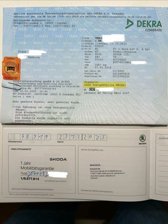 Der letzte Skoda Service fand am 23.12.2025 statt. Das Auto ist nachweislich lückenlos scheckheftgepflegt. Der KM Stand ist daher gut dokumentiert durch Skoda. Die Mobilitätsgarantie läuft bis 22.12.2026 und kann durch Einhaltung des nächsten Service im Dezember verlängert werden.