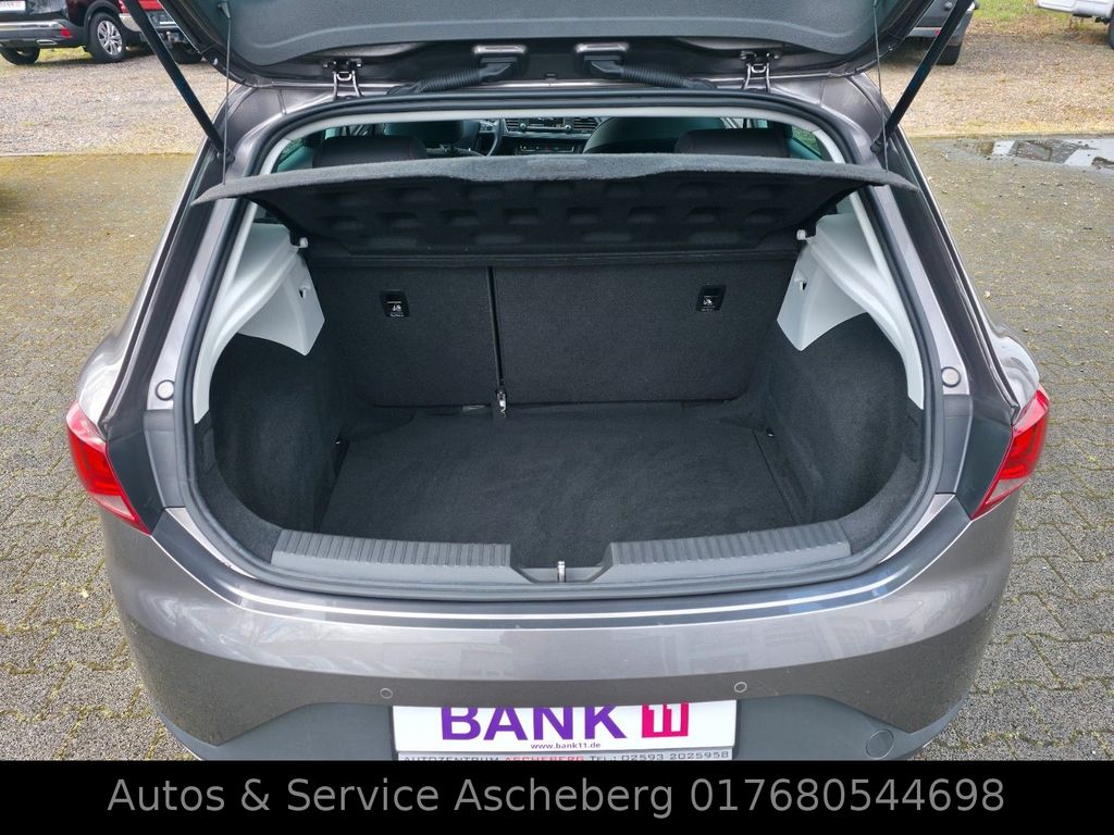 Ablagetasche an Vordersitzlehnen, Airbag Beifahrerseite abschaltbar, Airbag Fahrer-/Beifahrerseite, Antriebs-Schlupfregelung (ASR), Außenspiegel elektr. anklappbar, Außenspiegel elektr. verstell-, heiz- und anklappbar, beide, Außenspiegel mit Spiegelabsenkung, rechts, Außenspiegel und Türgriffe außen in Wagenfarbe, Außentemperaturanzeige, Blinkleuchten LED in Außenspiegel integriert, Bordcomputer, Bremsassistent, Elektron. Differentialsperre (EDS), Fahrassistenz-System: Berganfahr-Assistent (Hill-Holder), Fahrassistenz-System: Berganfahr-Assistent und Elektron. Differentialsperre, Fahrassistenz-System: Fahrprofilauswahl (SEAT Drive Profile), Fahrassistenz-System: Umfeldbeobachtungssystem (Front assist) mit City-Notbremsfunktion, Fensterheber elektrisch hinten, Handschuhfach beleuchtet, Heckleuchten LED, Innenausstattung: Chrom-Applikationen, Isofix-Aufnahmen für Kindersitz, Karosserie: 5-türig, Klimaanlage Climatronic 2-Zonen, Knieairbag Fahrerseite, Kopf-Airbag-System, Kopfstützen hinten (3-fach), Kopfstützen vorn verstellbar, Lendenwirbelstütze Sitz vorn links, verstellbar, Lendenwirbelstütze Sitz vorn rechts, verstellbar, Lenkrad (Sport/Leder), LM-Felgen, Mittelkonsole vorn mit Mittelarmlehne, Becherhalter, Ablagebox und Luftdüsen hinten, Modellpflege, Motor 1,4 Ltr. - 92 kW 16V TSI, Reifenkontroll-Anzeige, Rücksitzlehne geteilt/klappbar (1/3-2/3), Schadstoffarm nach Abgasnorm Euro 6, Schalt-/Wählhebelgriff Leder, SEAT Media-System Plus, Seitenairbag, Seitenscheiben hinten und Heckscheibe abgedunkelt, Sitz vorn links höhenverstellbar, Sitz vorn rechts höhenverstellbar, Sonnenblende links mit Spiegel (beleuchtet), Sonnenblende rechts mit Spiegel (beleuchtet), Sport-Fahrwerk FR / Cupra, Sportsitze vorn, Start/Stop-Anlage, Stau-/Ablagefach unter Sitze vorn, Steckdose (12V-Anschluß) vorn, Stoßfänger lackiert, Wärmeschutzverglasung, Seitenscheiben hinten und Heckscheibe abgedunkelt