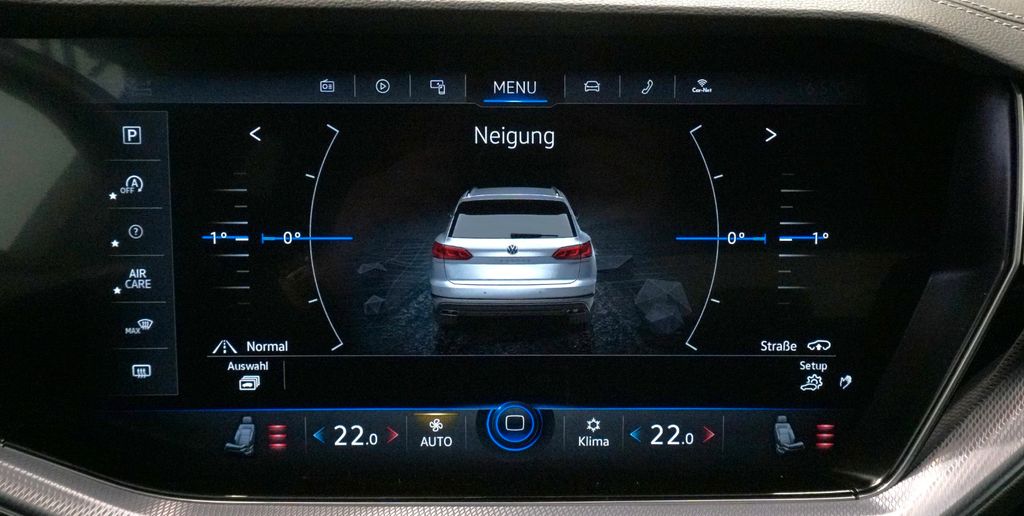 Bordwerkzeug und Wagenheber, Dachreling, Design-Paket Black Style, Fahrassistenz-Paket Plus, Fzg. ohne Rückfahrkamera, Innovision Cockpit (Instrumente digital und Bedienung über Touchscreen-Farbdisplay), Kofferraumdeckel / Heckklappe elektr. betätigt (öffnen + schliessen), Leder-Paket Savona und ErgoComfort Sitze vorn, LM-Felgen 9,5x21 (Suzuka, schwarz), Luftfederung elektronisch geregelt inkl. Allradlenkung, Matrix-LED-Scheinwerfer (IQ.Light), Memory-Paket, Mobile Online Dienste Car-Net, Reifendruck-Kontrollsystem, Seitenscheiben hinten und Heckscheibe abgedunkelt, Sonderlackierung Oryx-Weiß Perlmutt-Effekt, Standheizung mit Standlüftung (Fernbedienung und Timer)